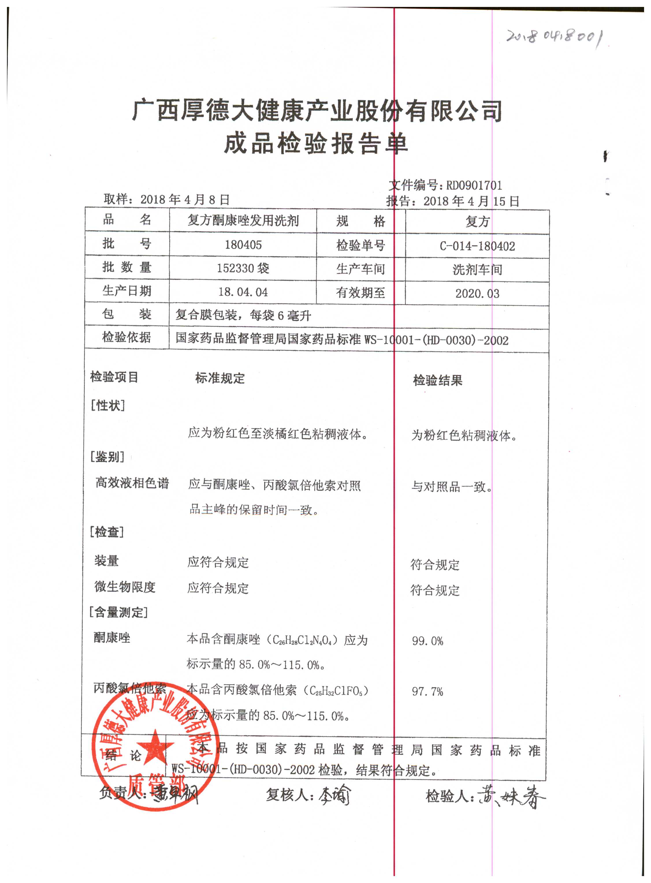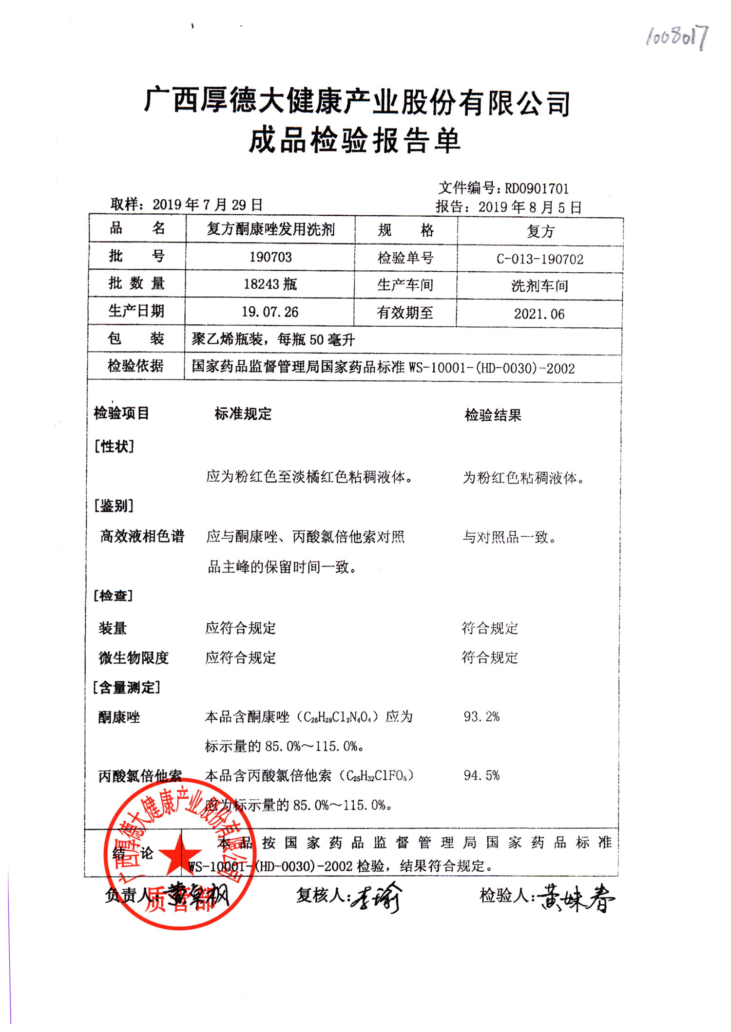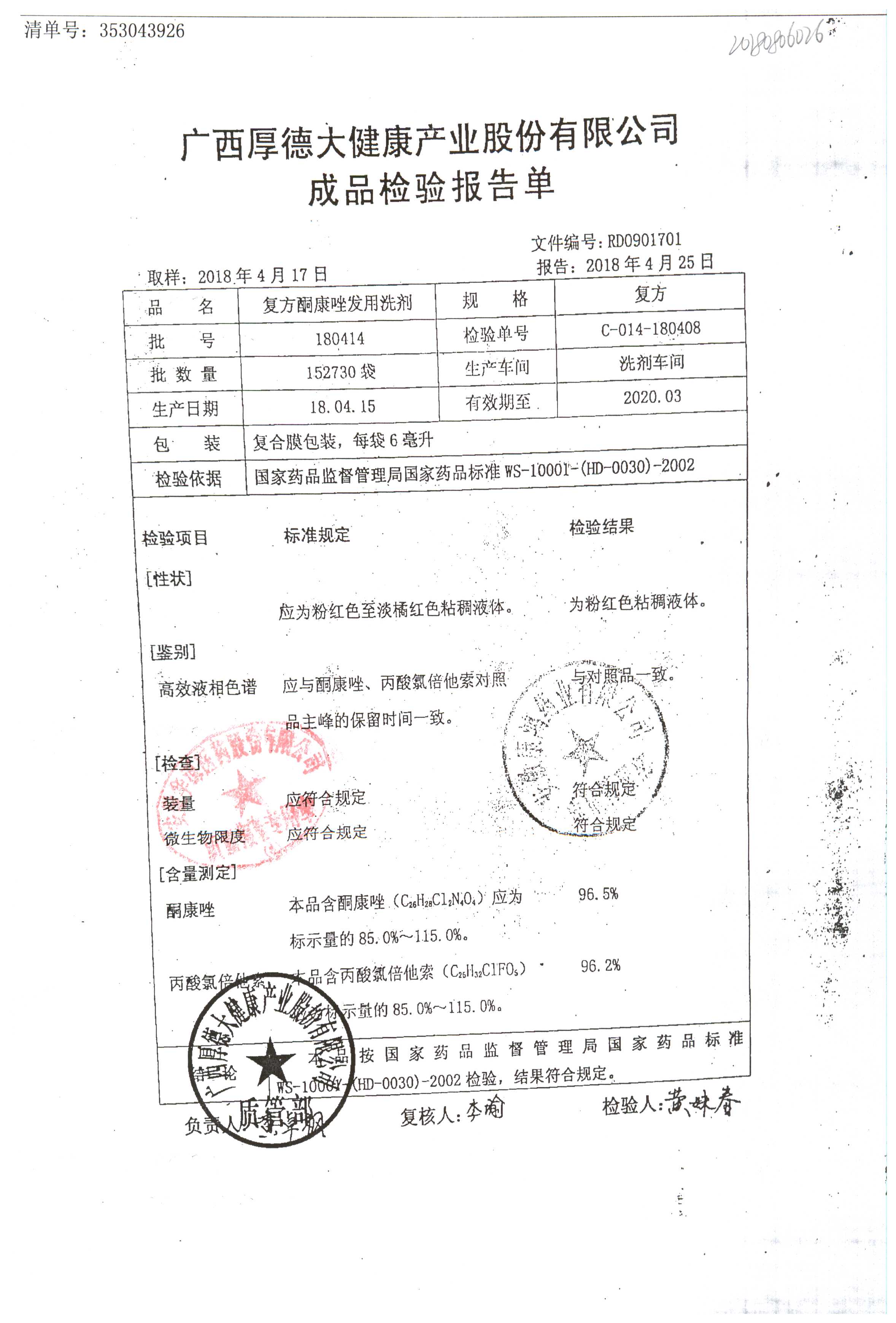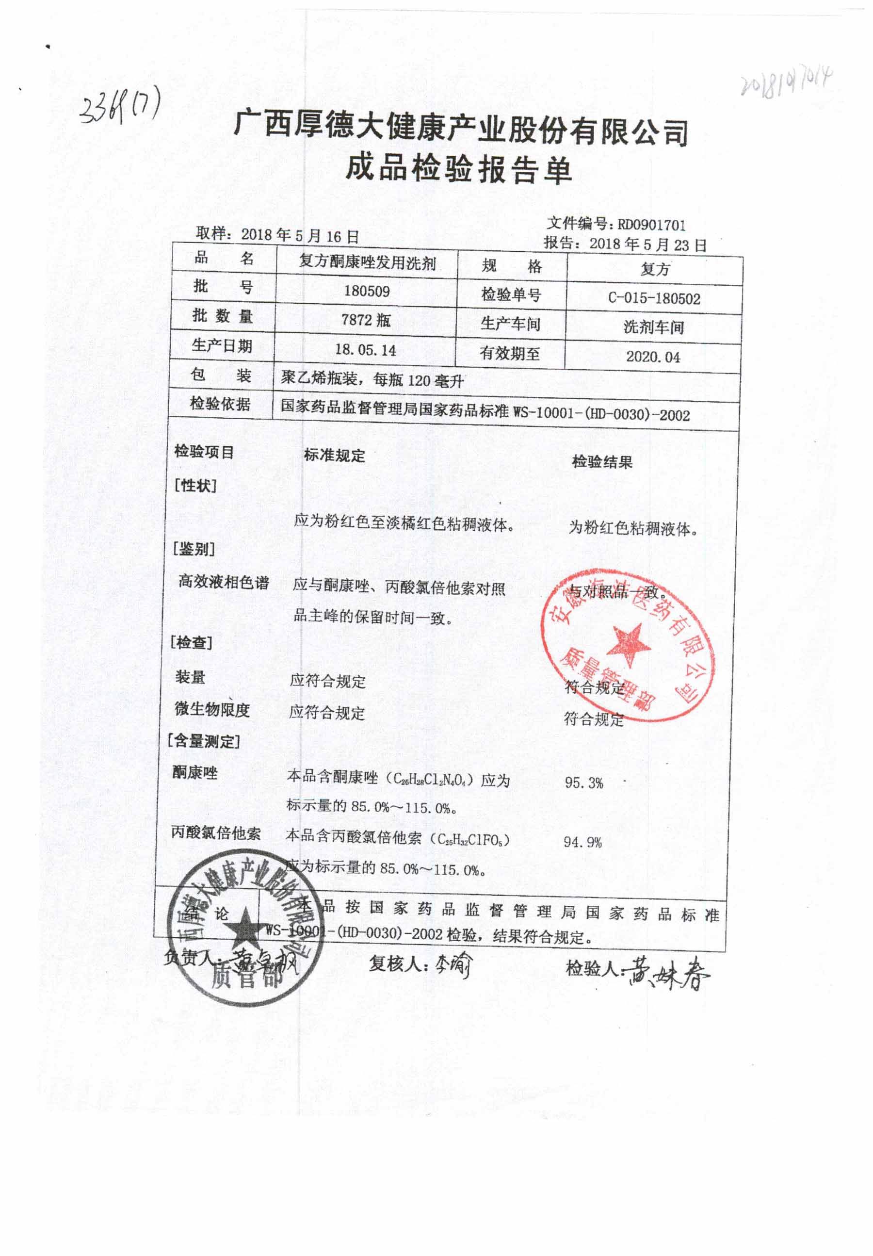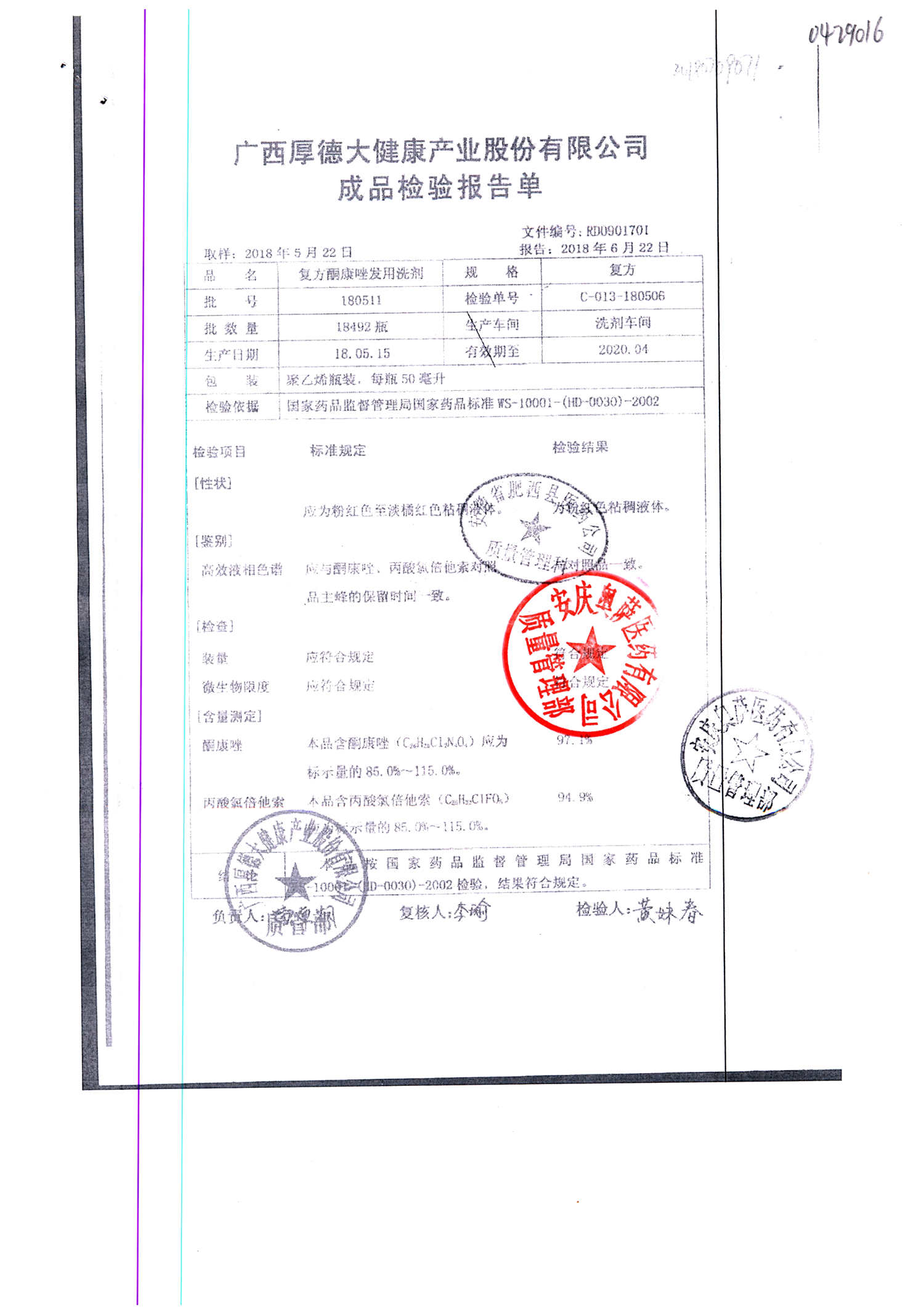 | 復方酮康唑發(fā)用洗劑 | 復方 | 180405 | 查看詳情 |