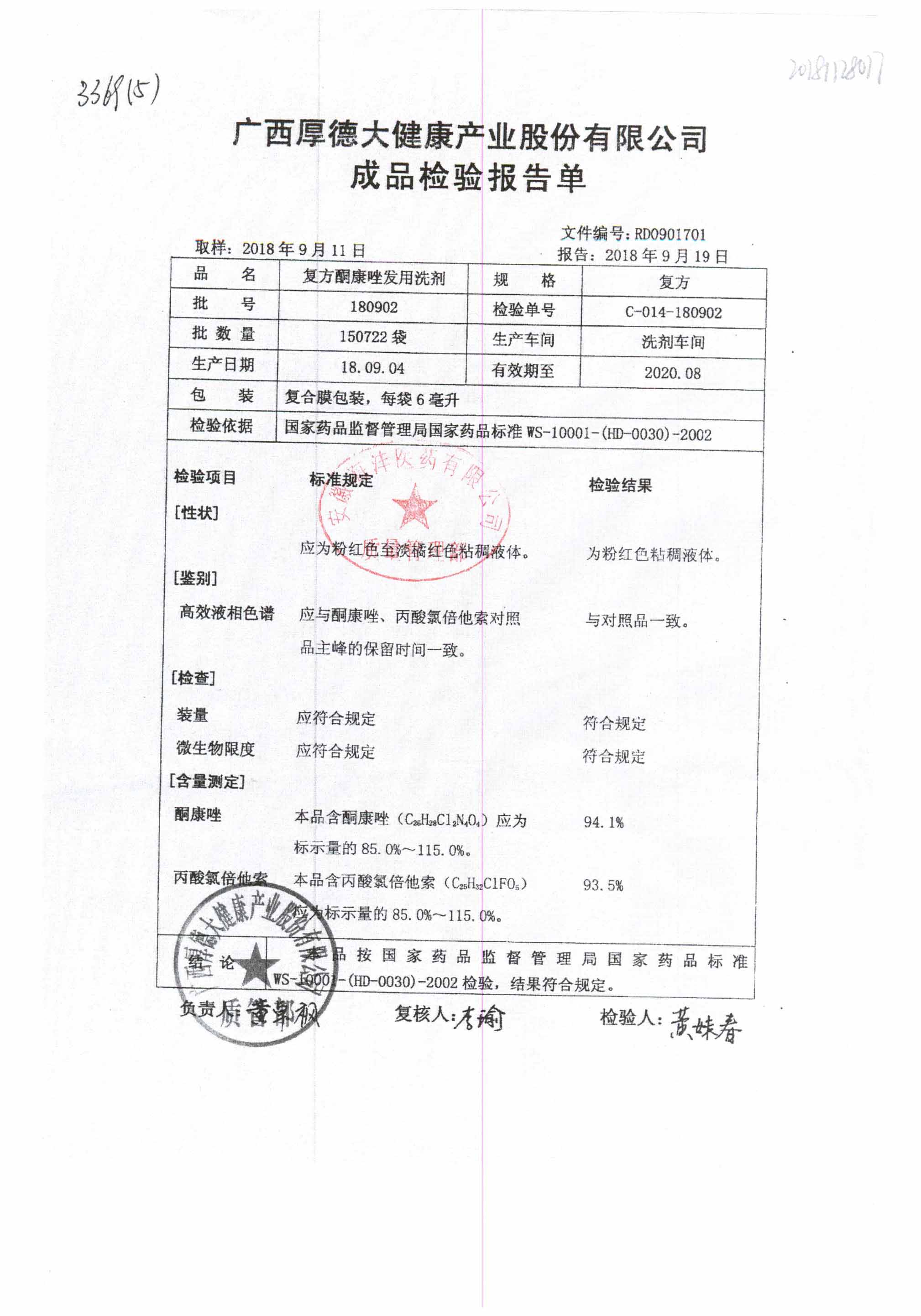 | 復方酮康唑發(fā)用洗劑 | 復方 | 180902 | 查看詳情 |