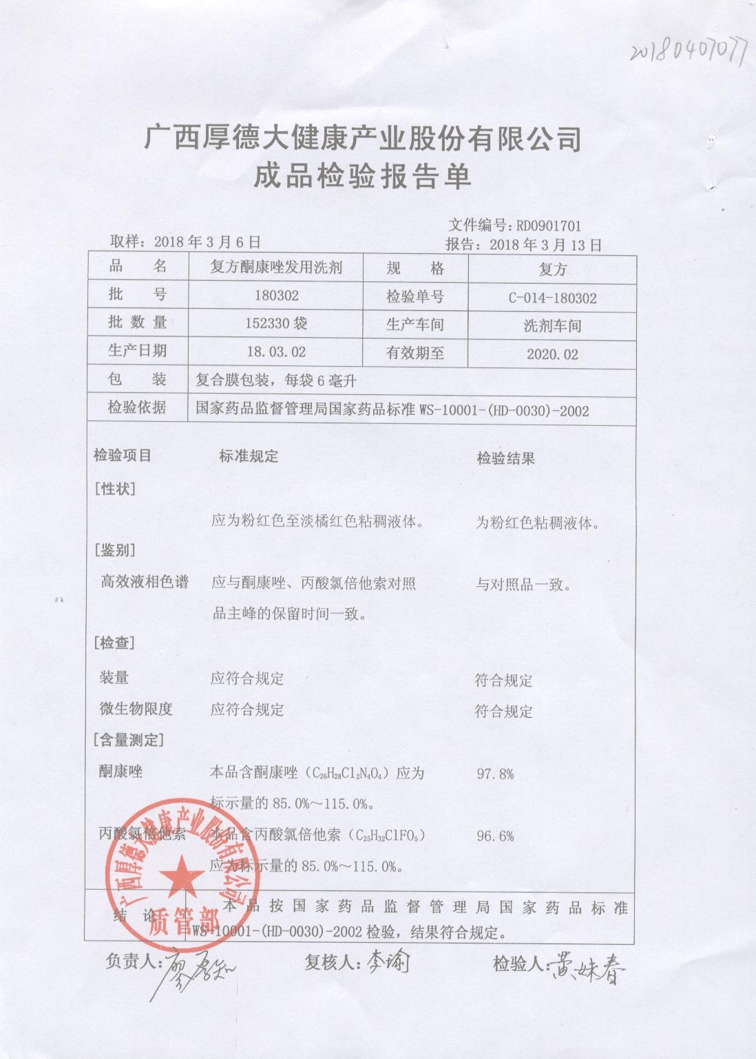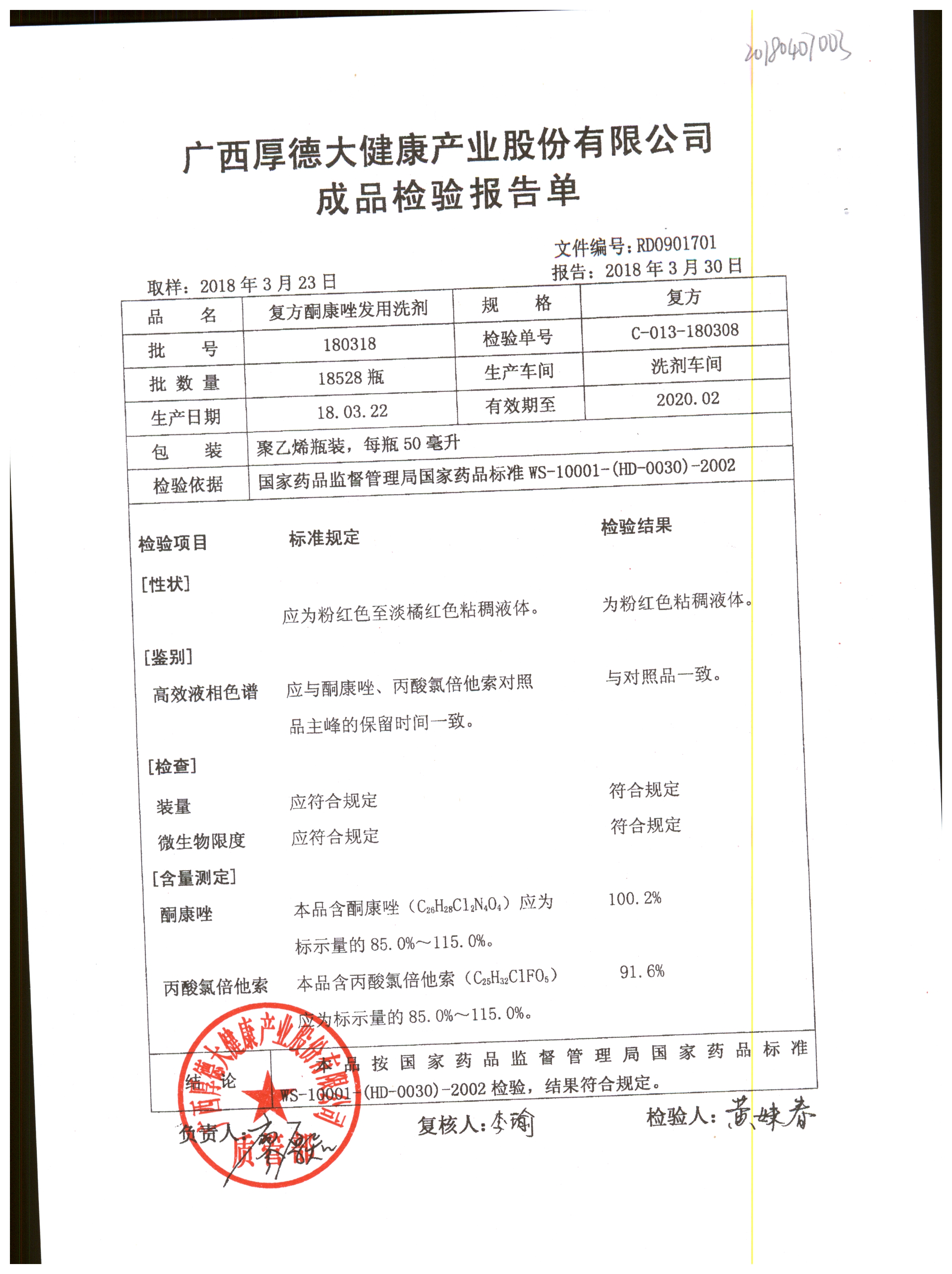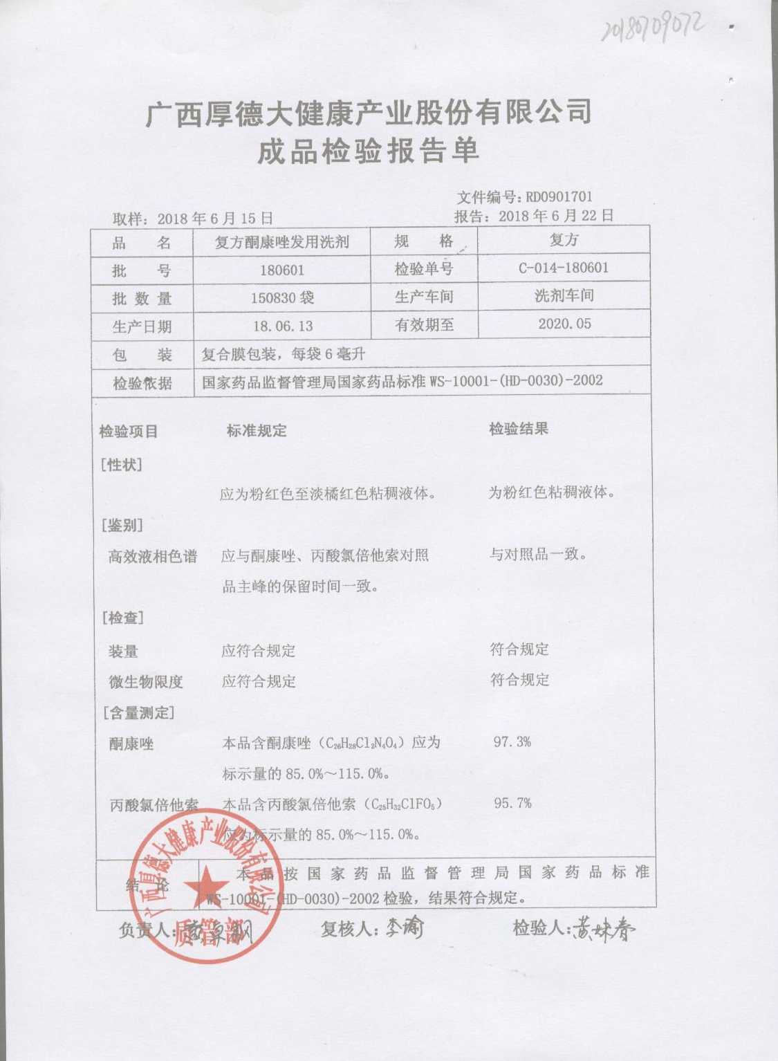 | 復方酮康唑發(fā)用洗劑 | 復方 | 200907 | 查看詳情 |