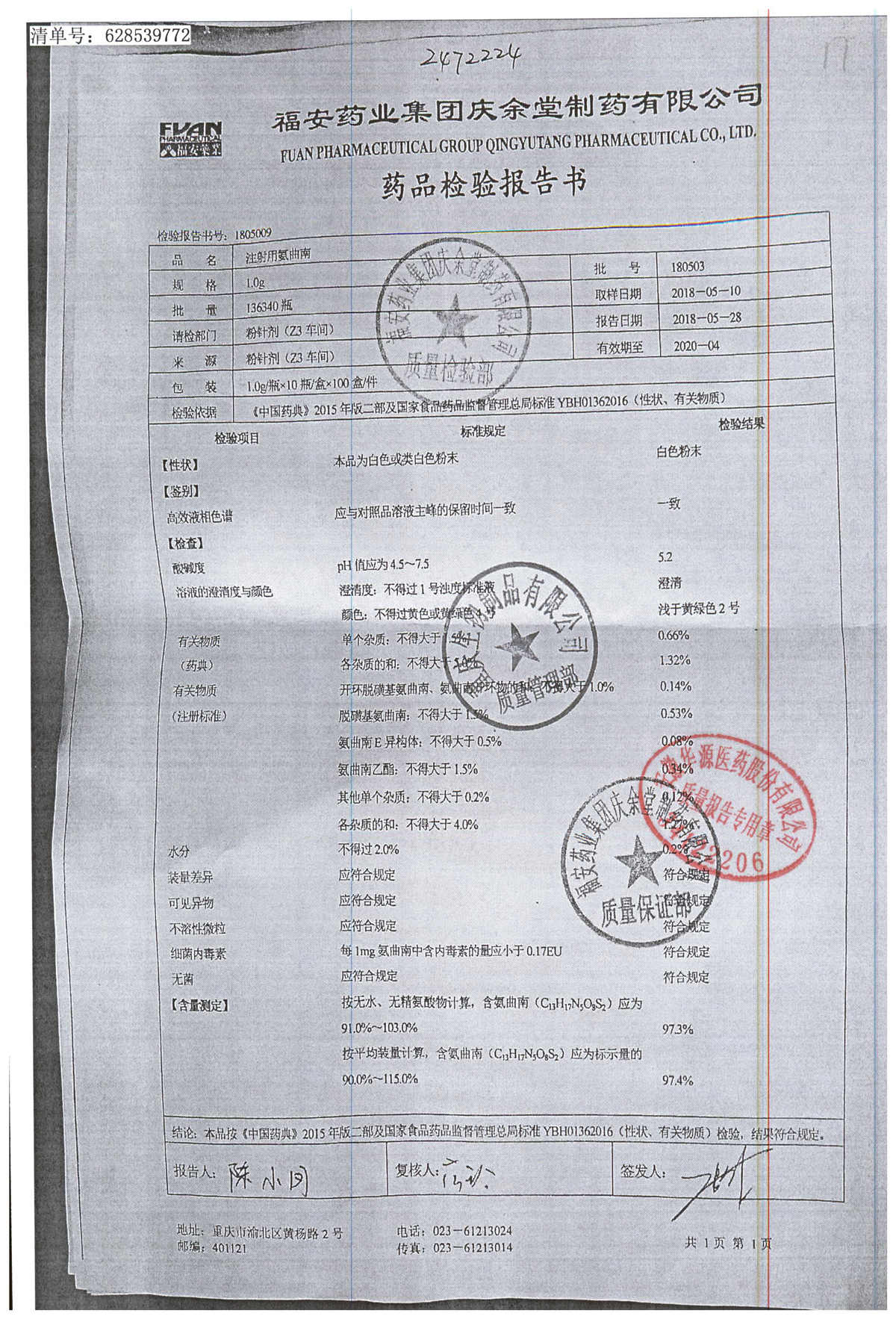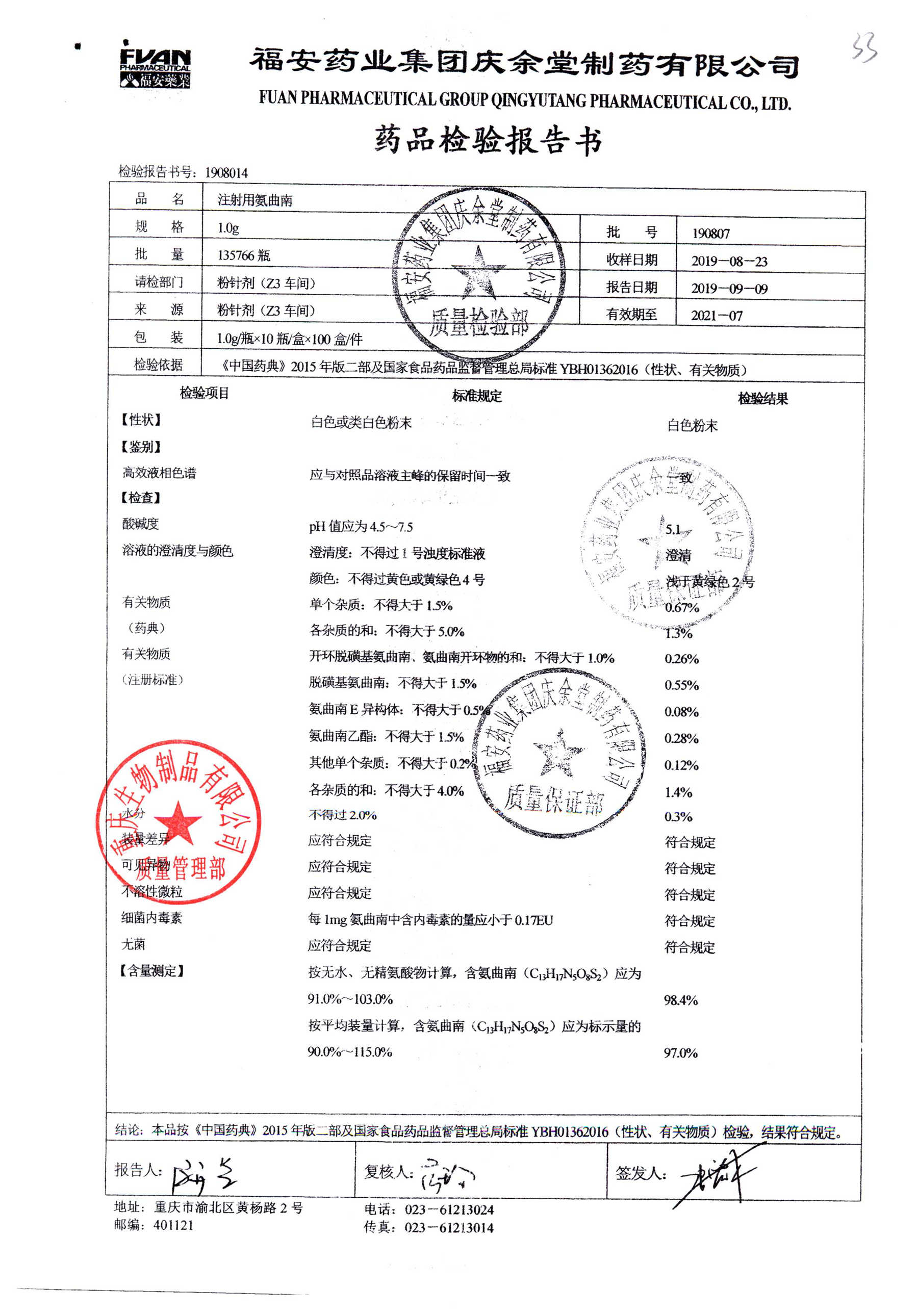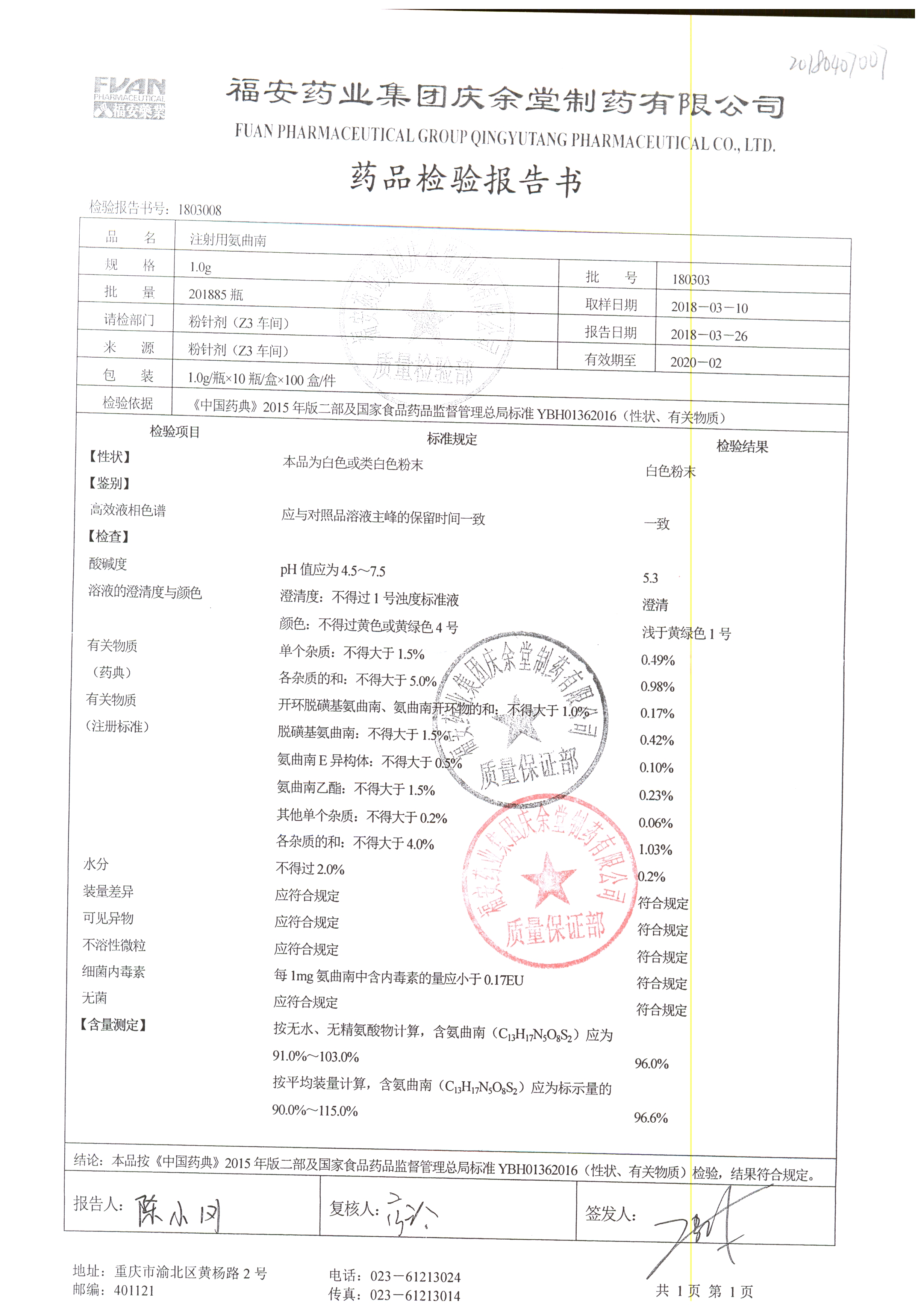 | 名稱 | 規(guī)格 | 批號(hào) | 藥檢報(bào)告 |