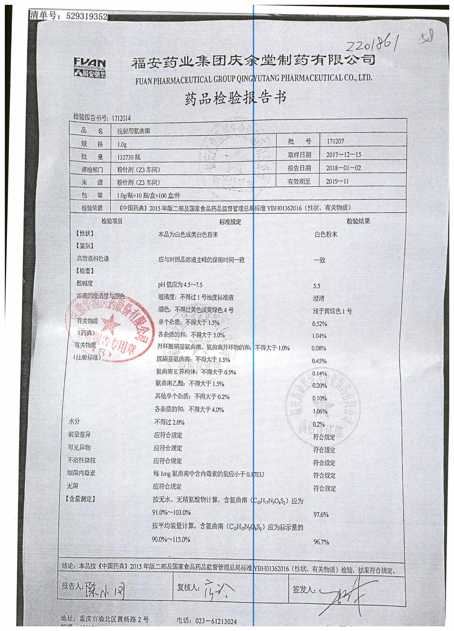 | 注射用氨曲南 | 1.0g | 171207 | 查看詳情 |
