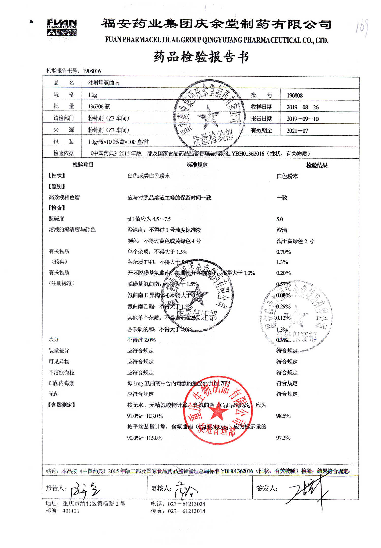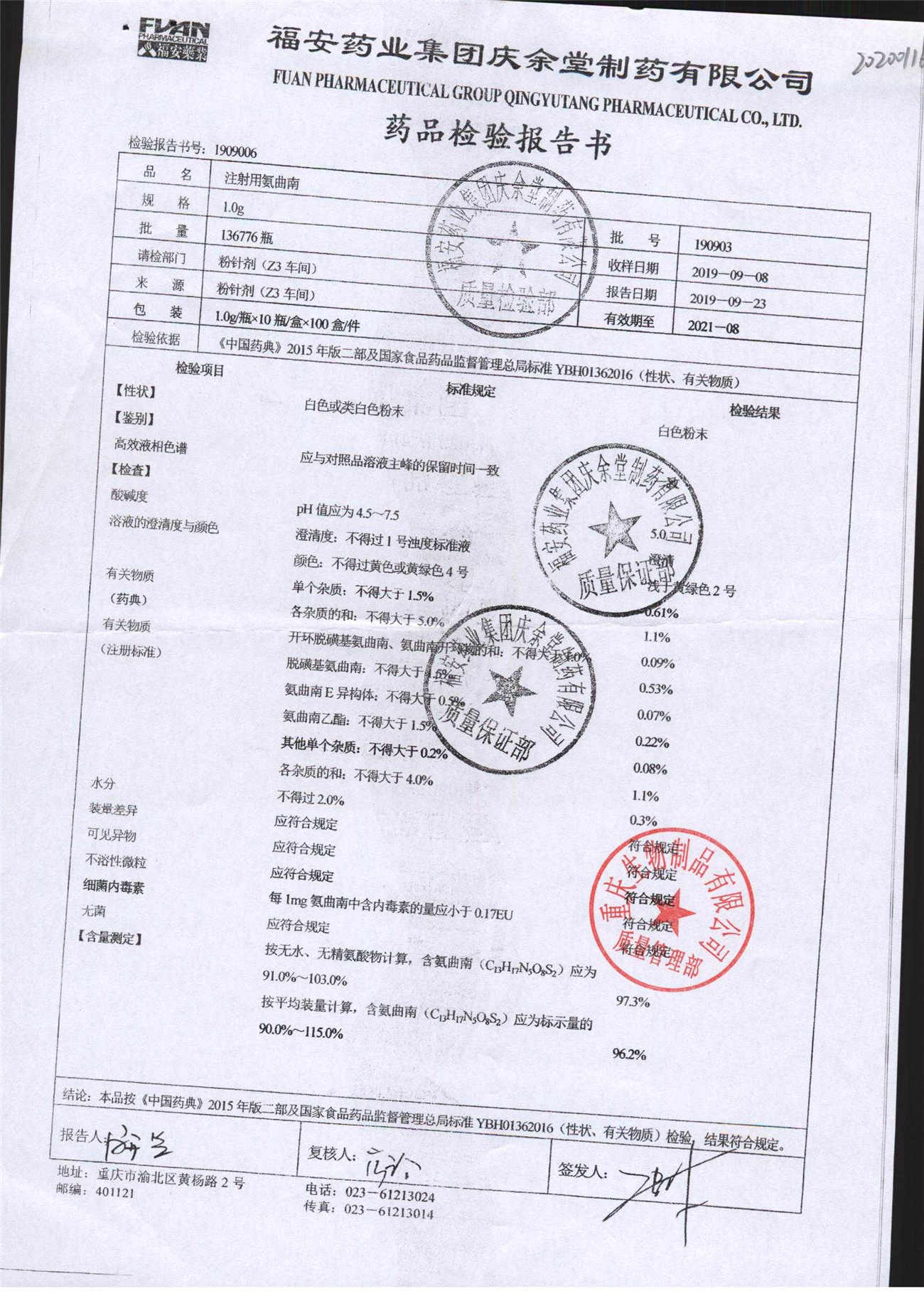 | 注射用氨曲南 | 1.0g | 190903 | 查看詳情 |