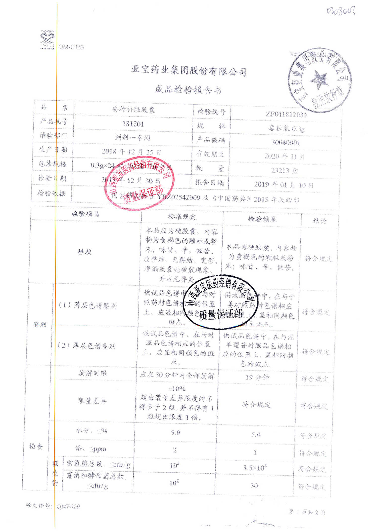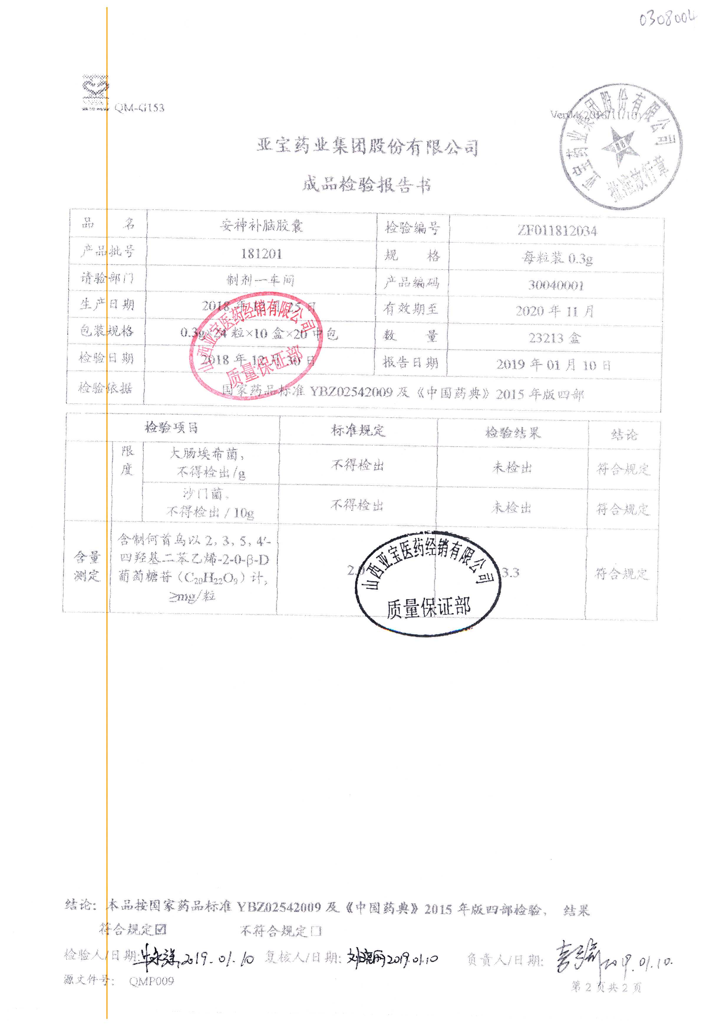 | 安神補(bǔ)腦膠囊 | 0.3g*24s | 181201(1/2) | 查看詳情 |