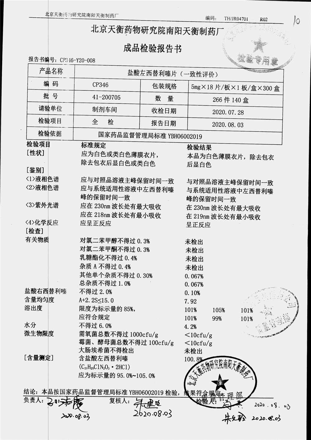 | 鹽酸左西替利嗪片 | 5mg*18s | 08-190802 | 查看詳情 |