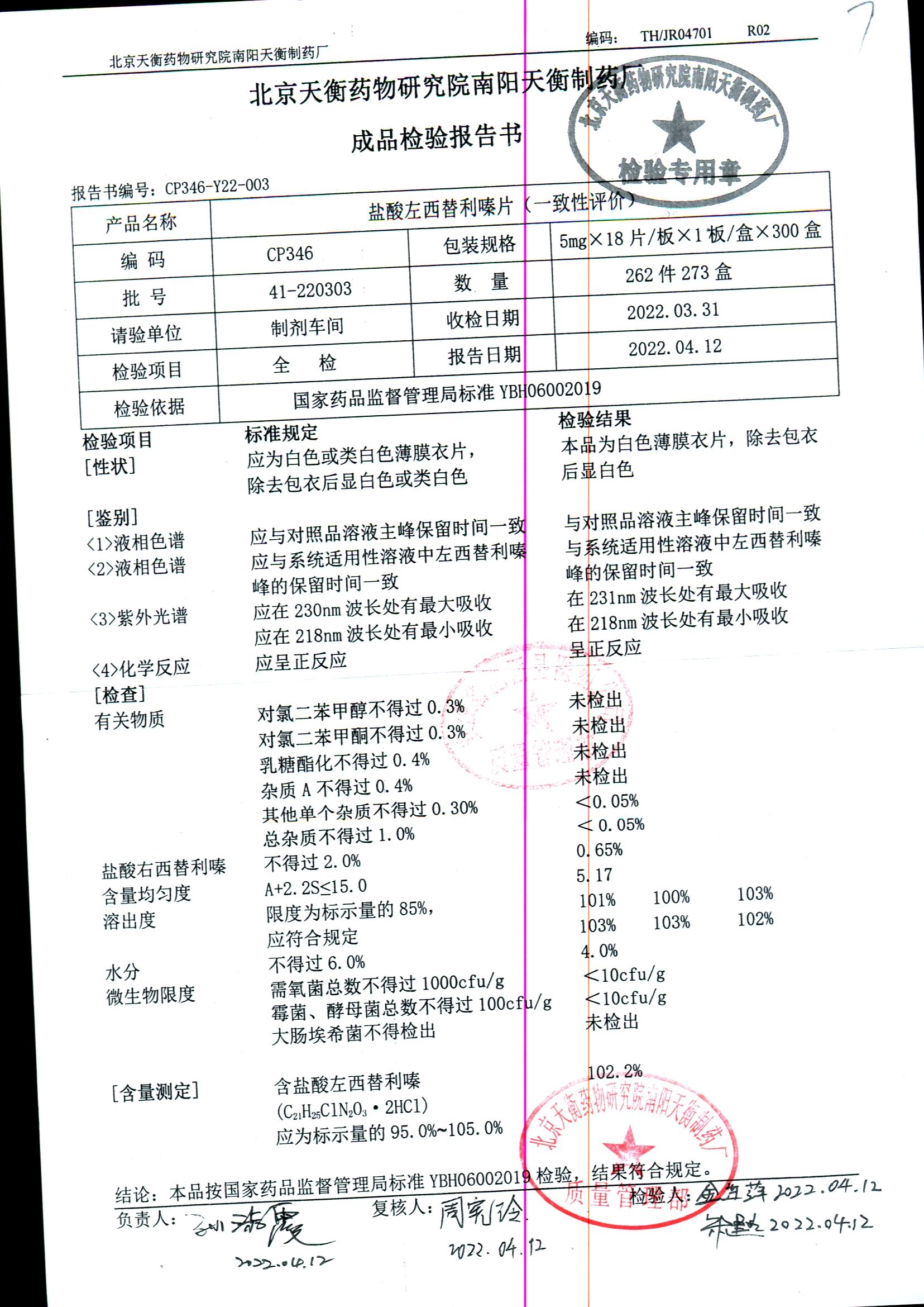 | 鹽酸左西替利嗪片 | 5mg*18s | 41-210802 | 查看詳情 |