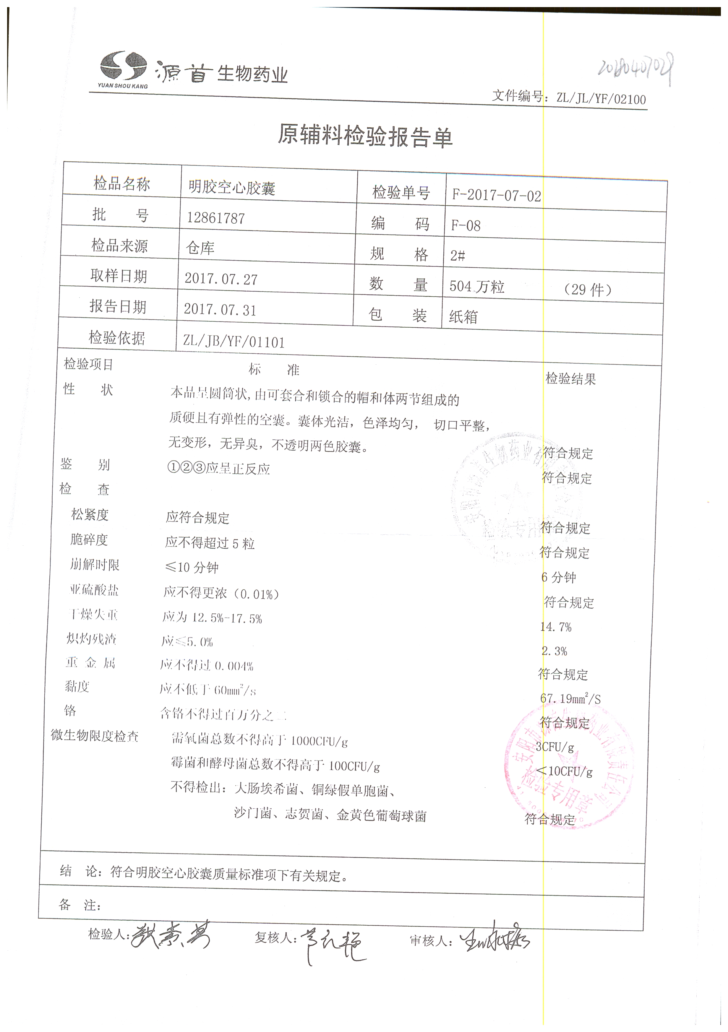 | 蠟樣芽孢桿菌活菌膠囊(源首) | 0.25g | 20190602(2/3) | 查看詳情 |