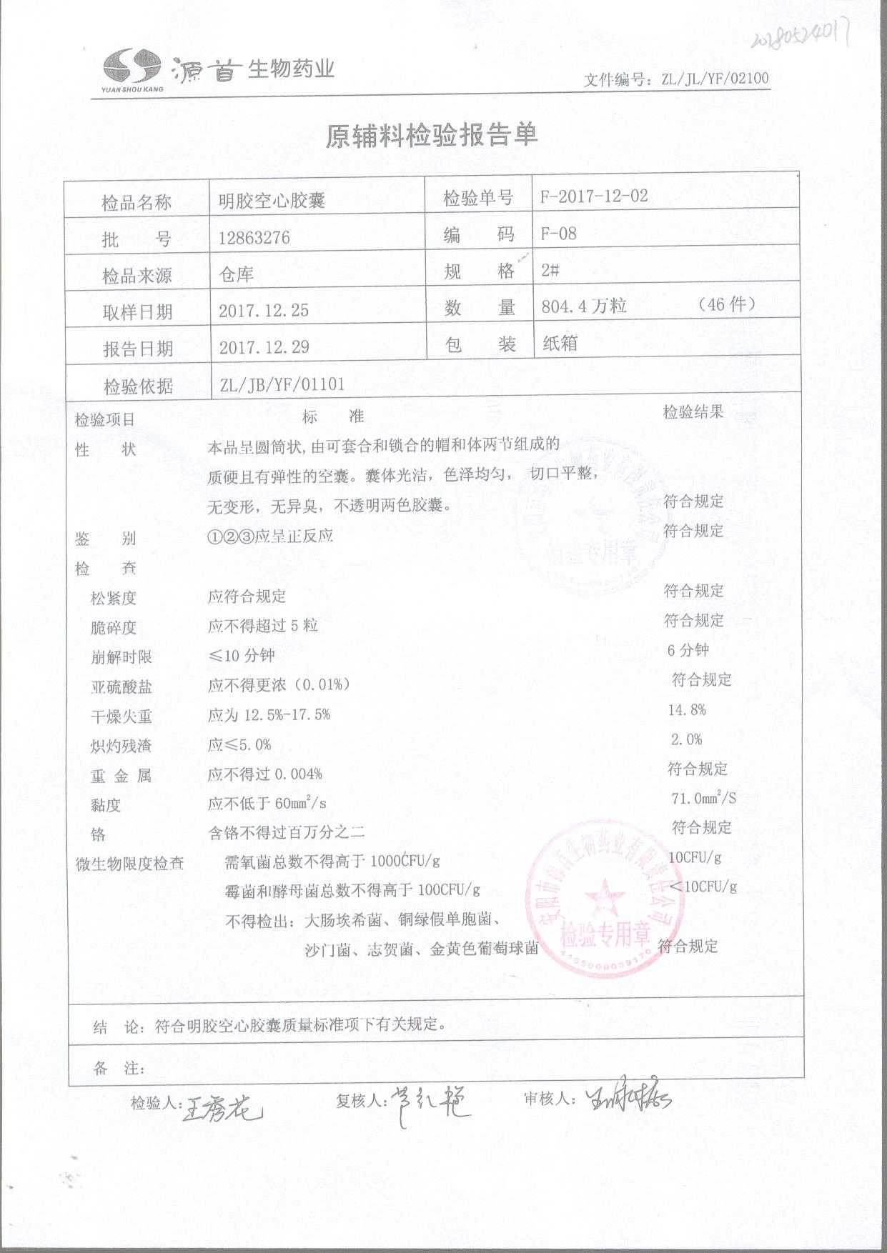 | 蠟樣芽孢桿菌活菌膠囊(源首) | 0.25g | 20171204 | 查看詳情 |
