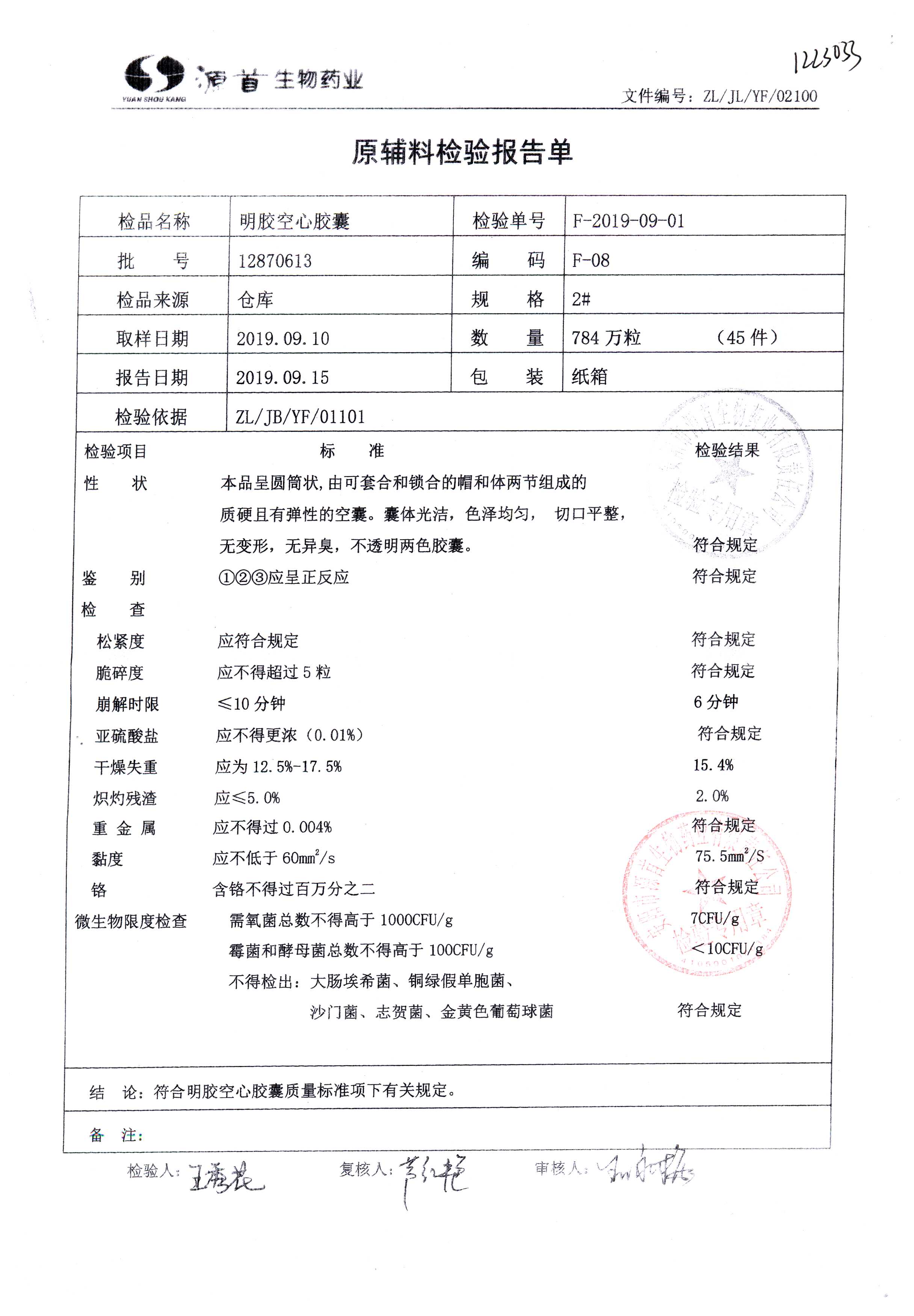 | 蠟樣芽孢桿菌活菌膠囊(源首) | 0.25g | 20191201(3/3) | 查看詳情 |
