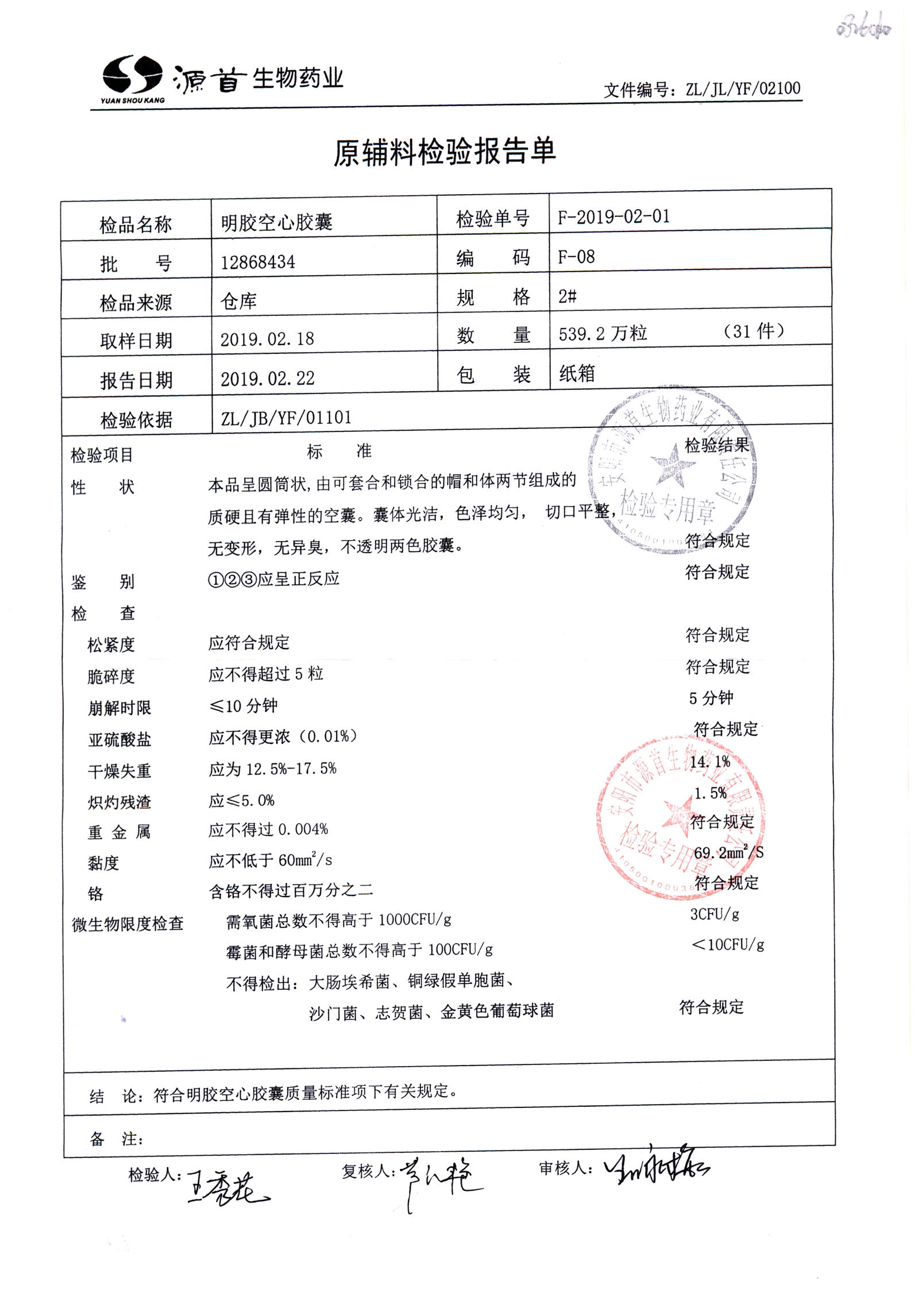 | 蠟樣芽孢桿菌活菌膠囊(源首) | 0.25g | 20190602(1/3) | 查看詳情 |