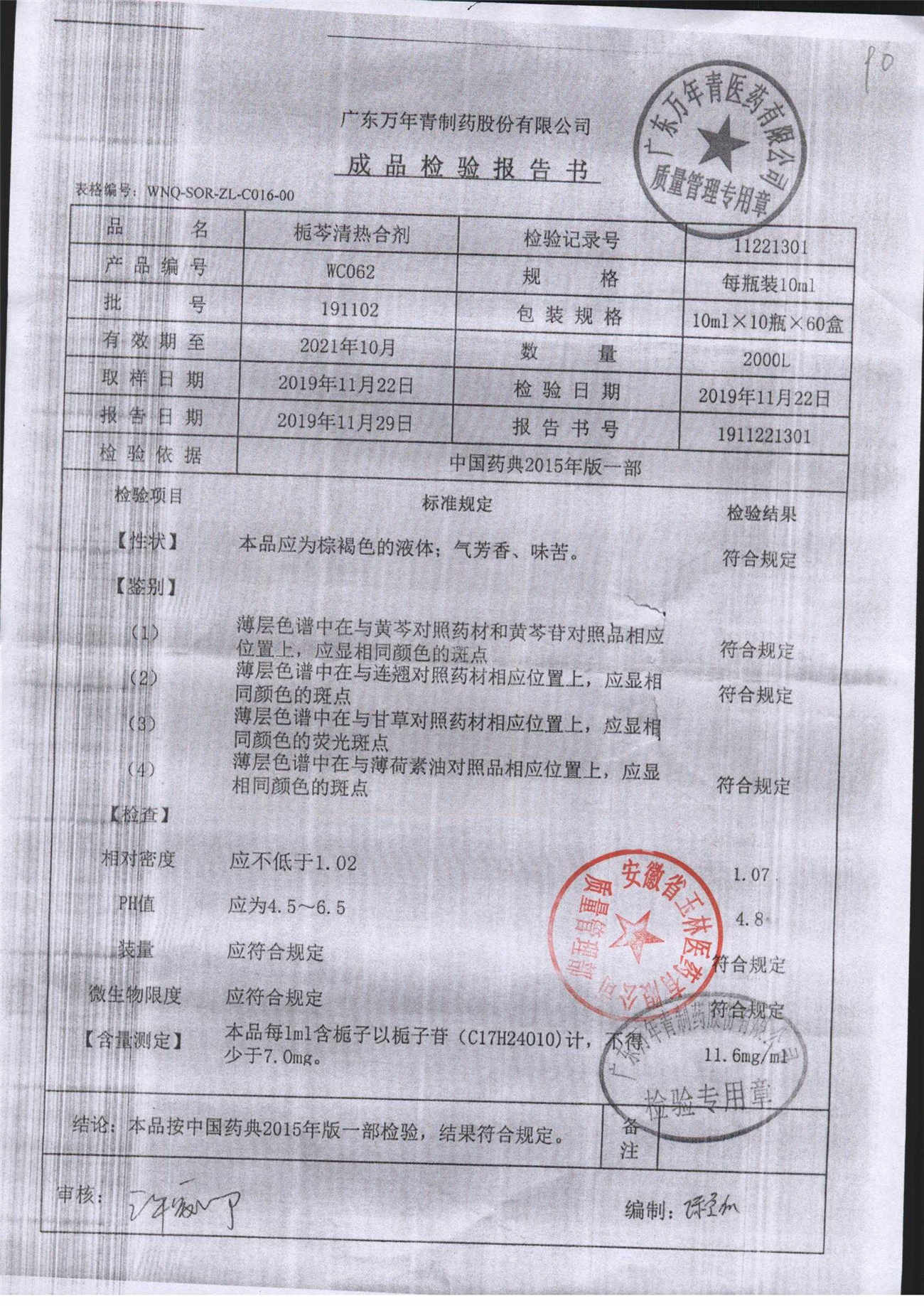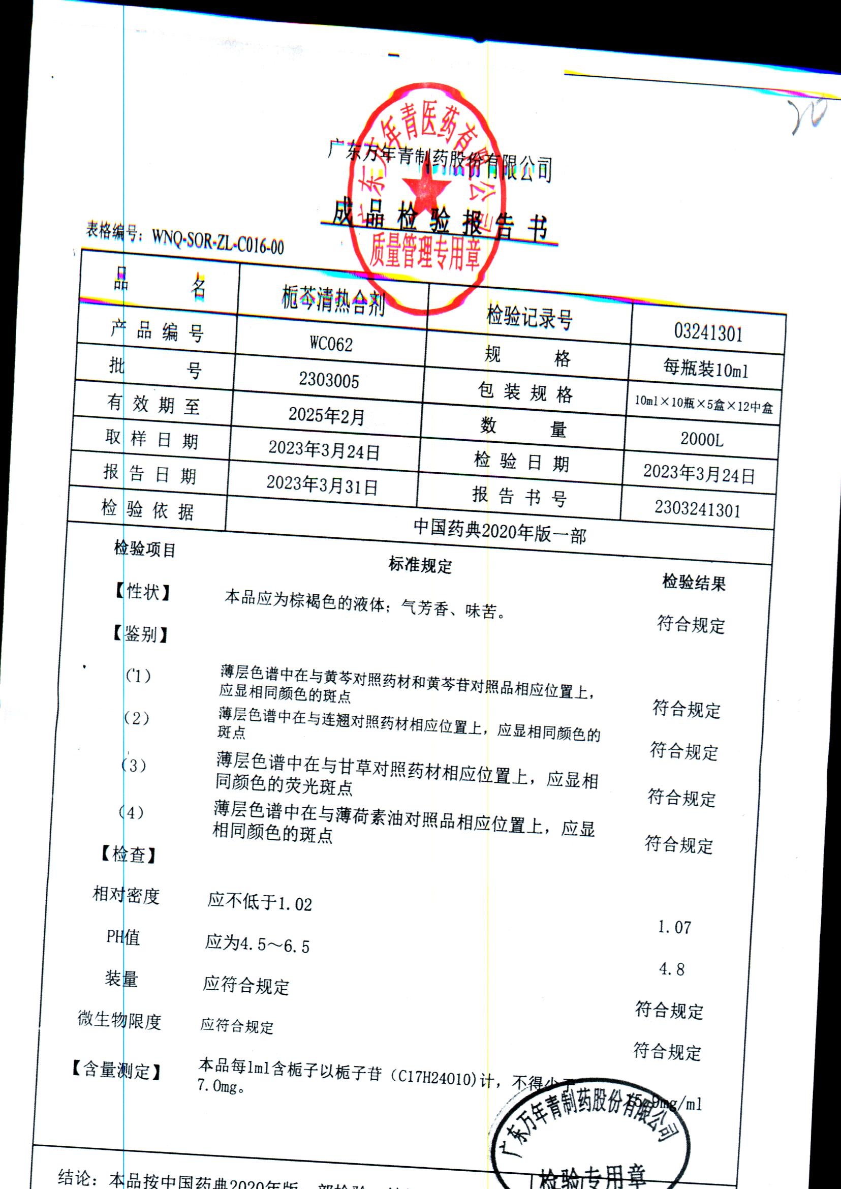 | 梔芩清熱合劑 | 10ml*10瓶 | 180301 | 查看詳情 |