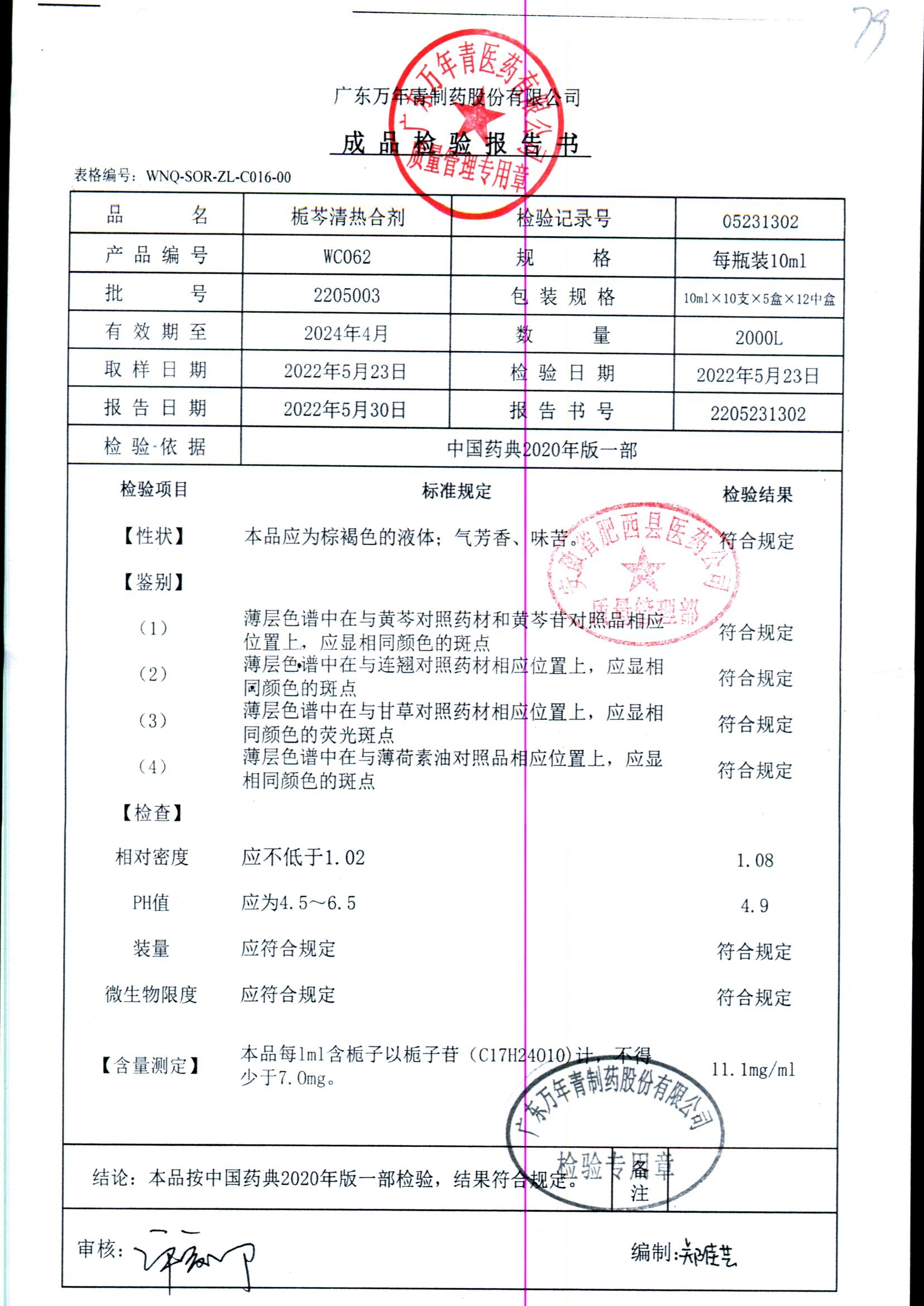 | 梔芩清熱合劑 | 10ml*10瓶 | 2302004 | 查看詳情 |