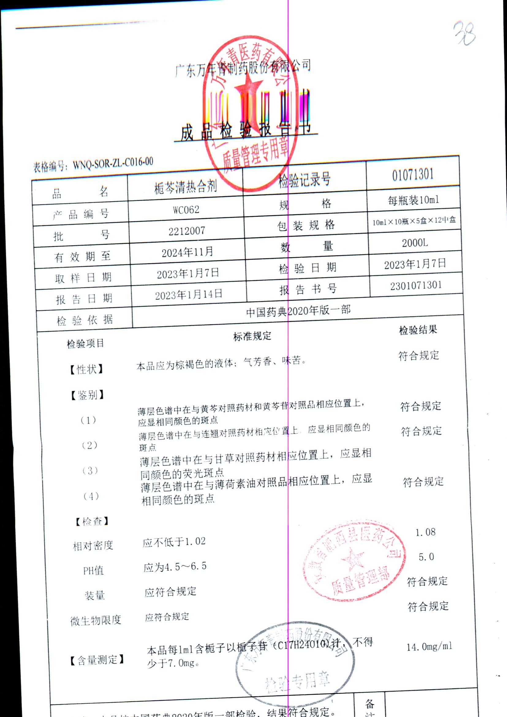 | 名稱 | 規(guī)格 | 批號 | 藥檢報告 |