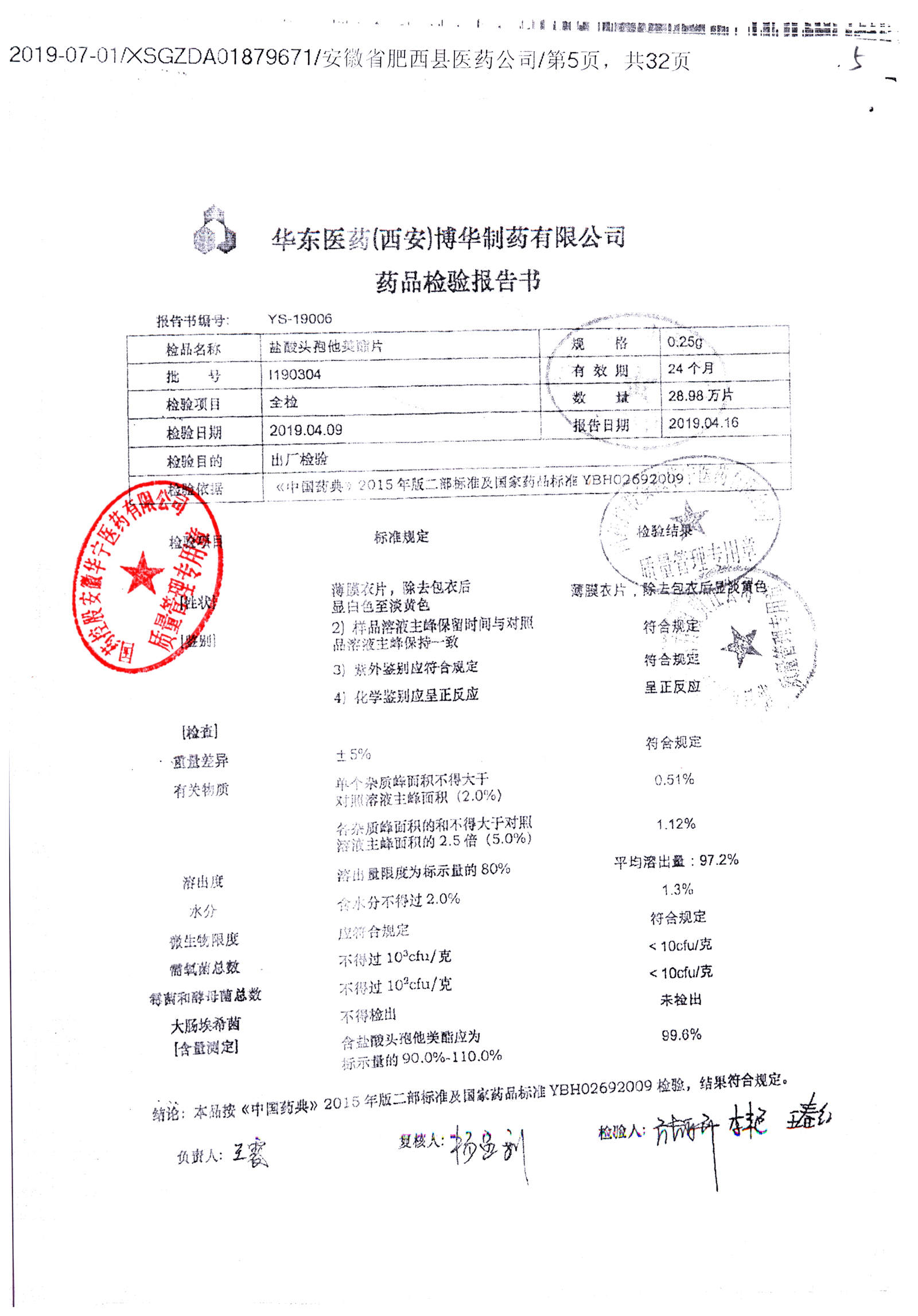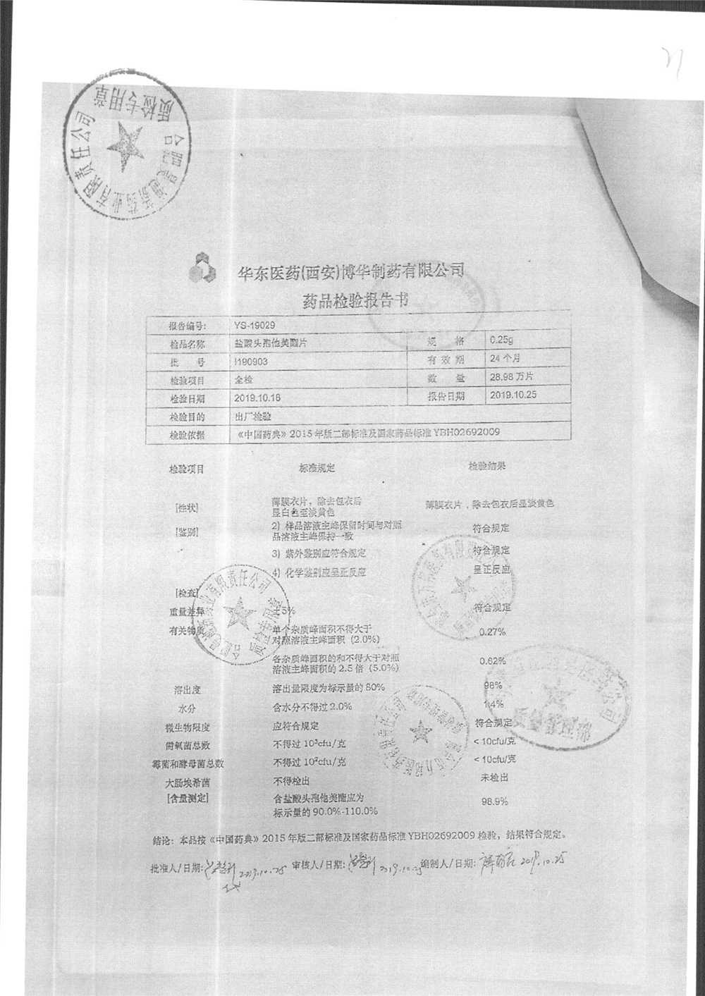 | 鹽酸頭孢他美酯片 | 0.25g | I190601 | 查看詳情 |