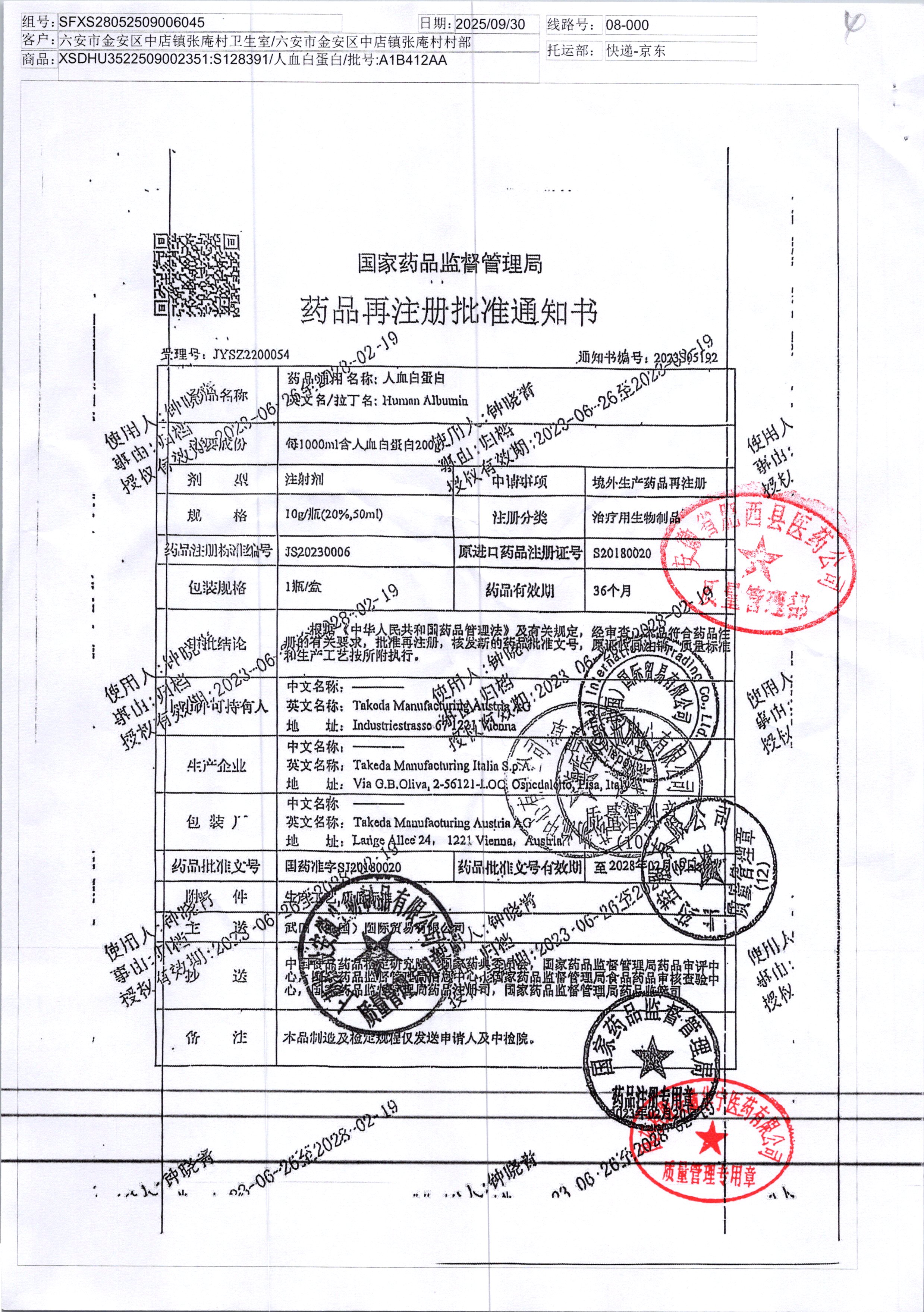 人血白蛋白 10g A1B412AA/2 查看詳情