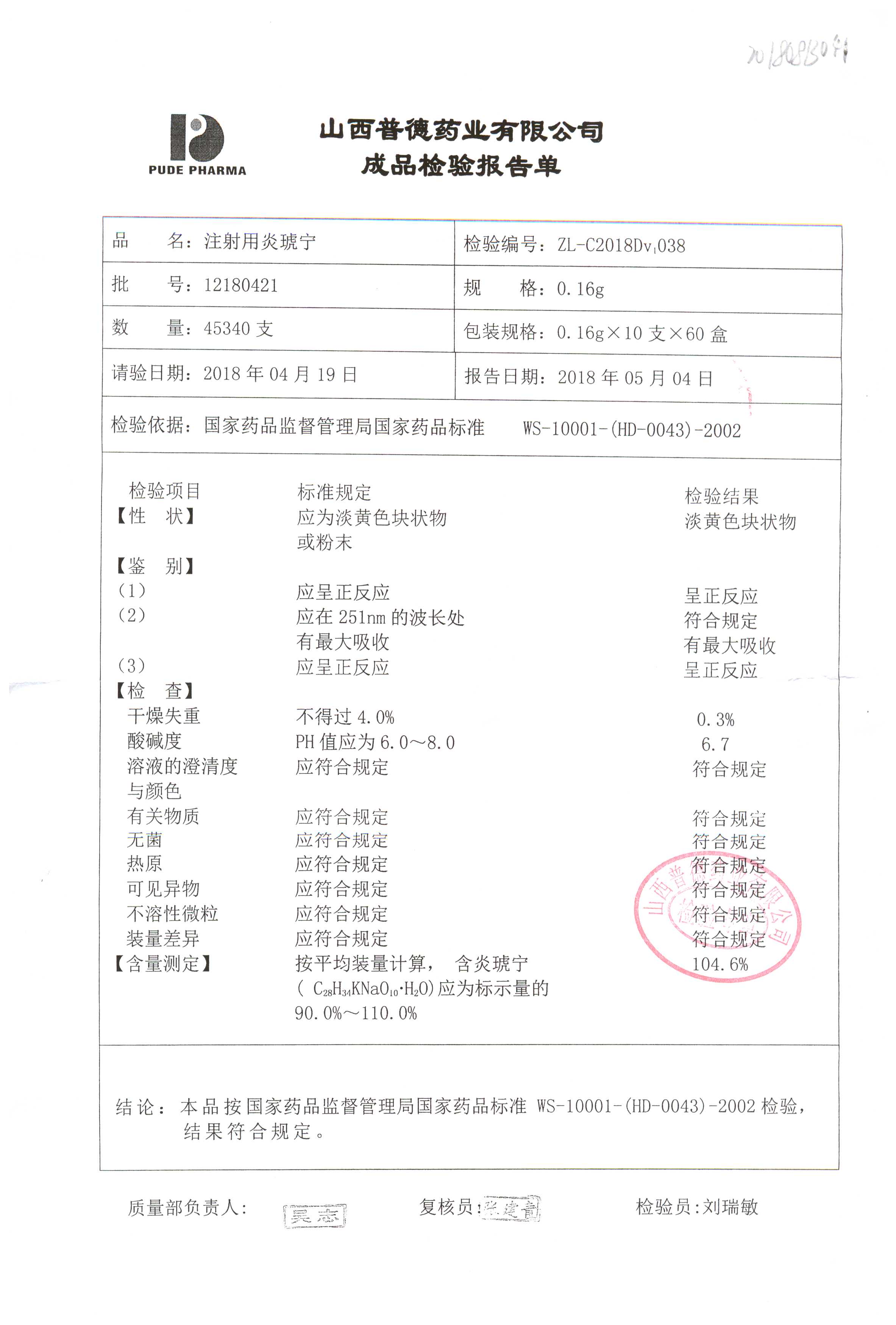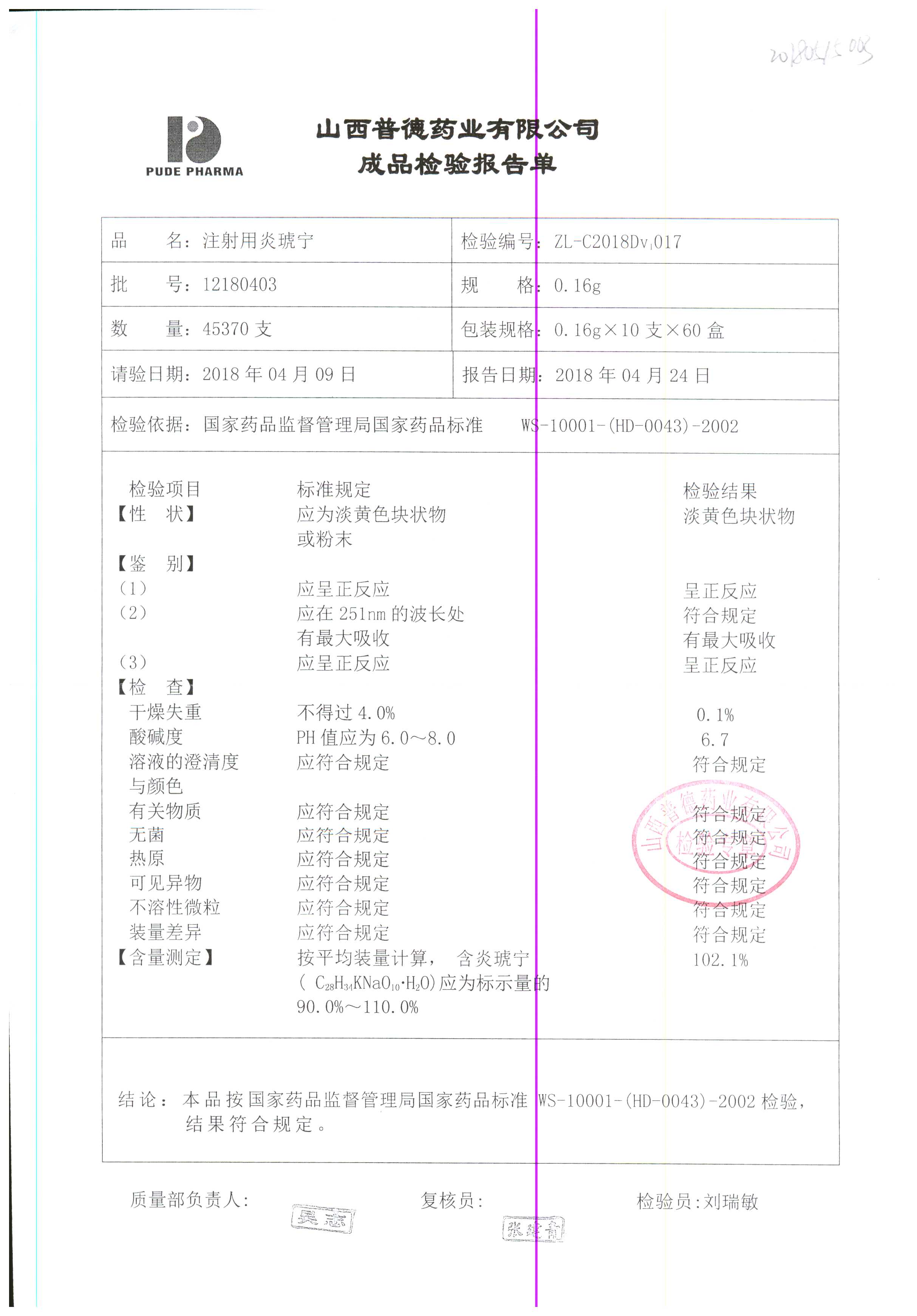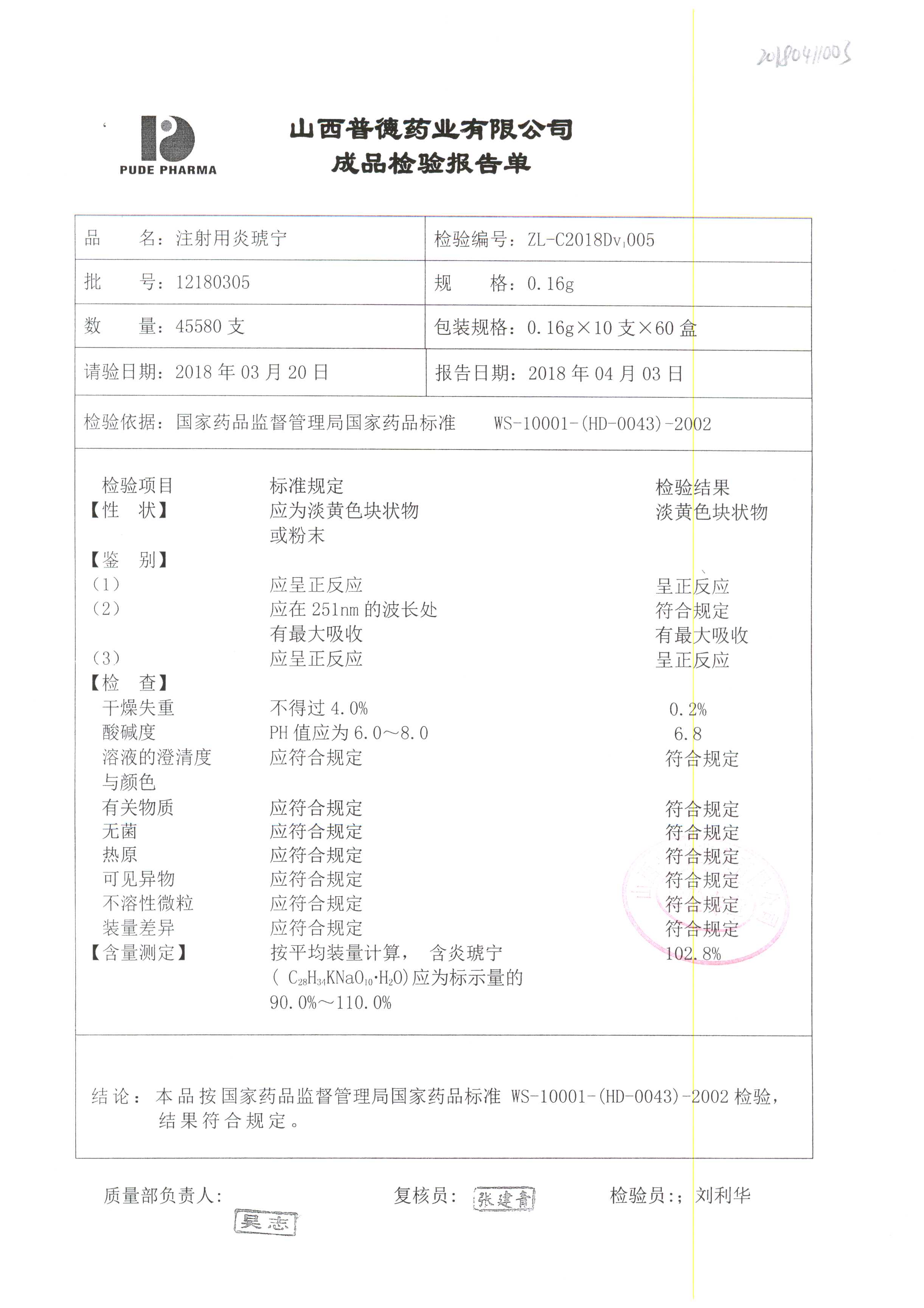 | 注射用炎琥寧 | 0.16g*10支 | 01190804 | 查看詳情 |