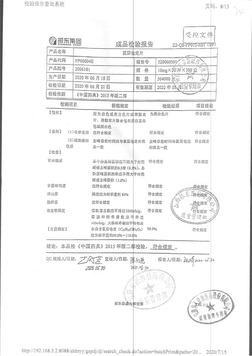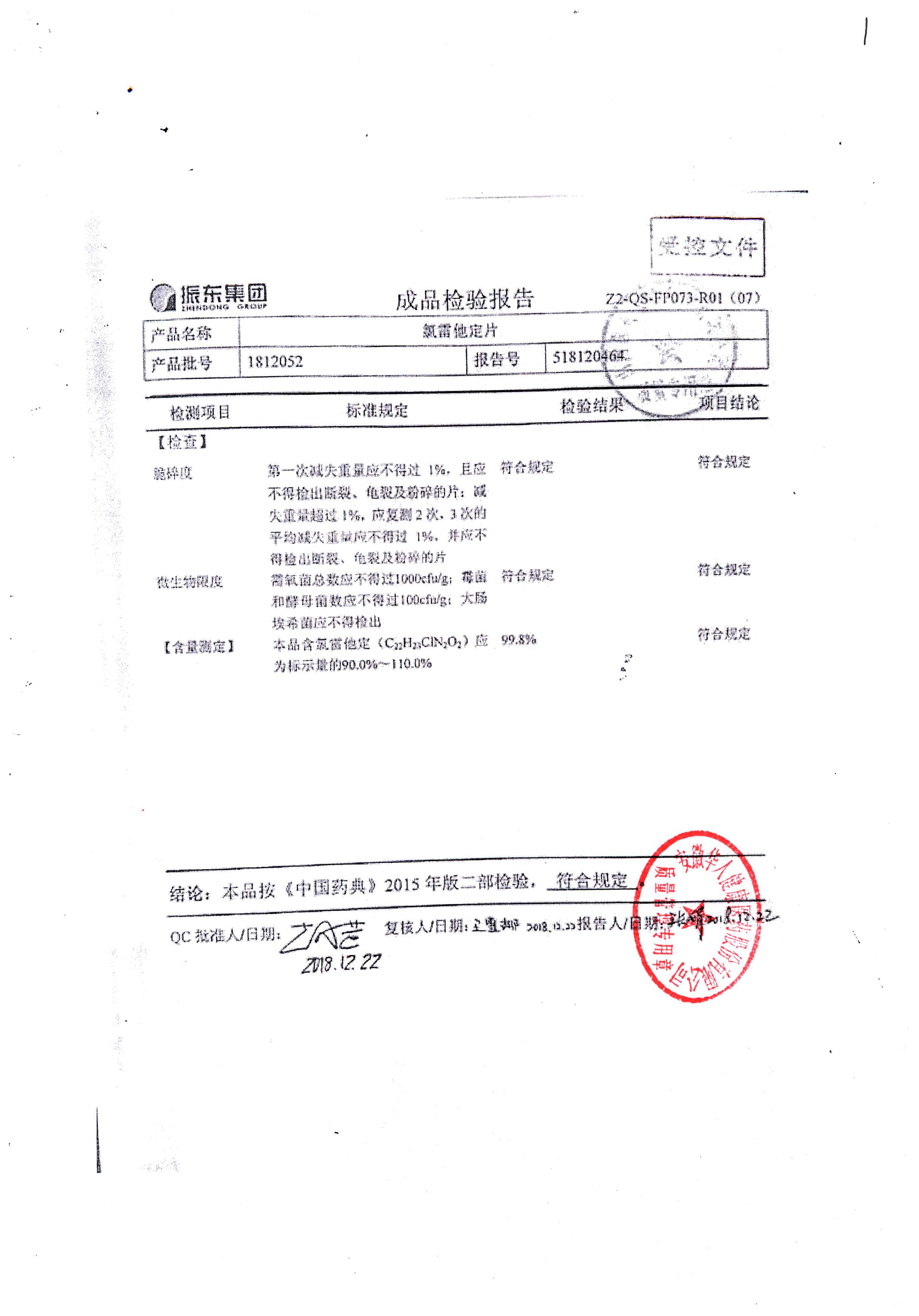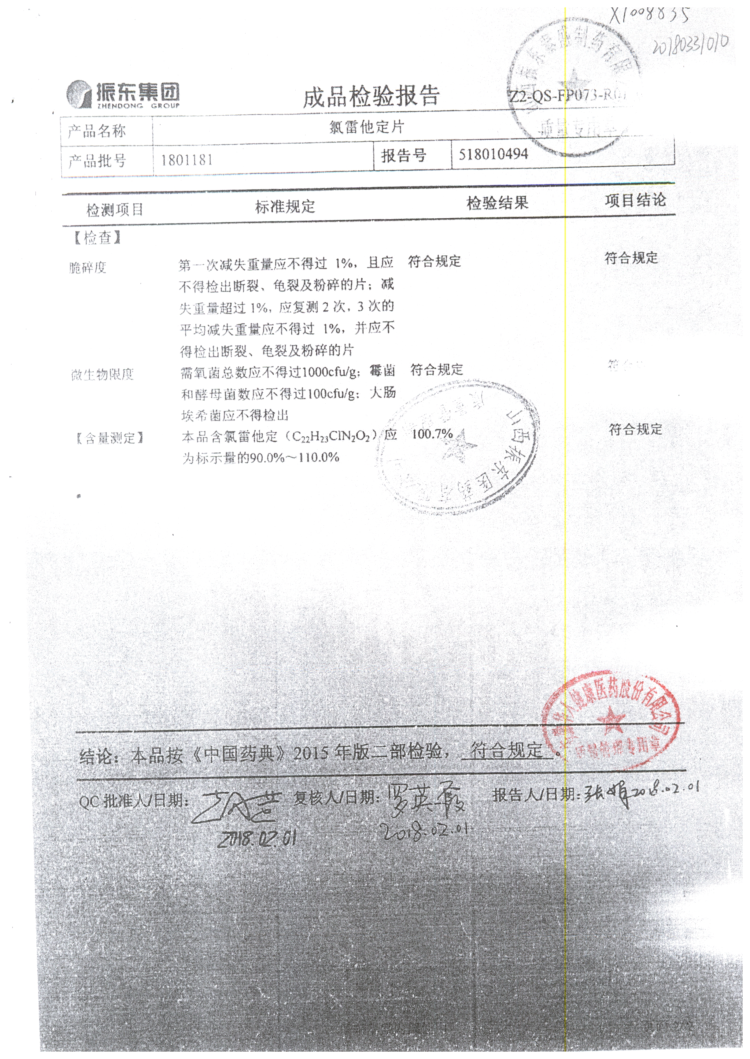| 氯雷他定片 | 10mg*20s | 1809111(2/2) | 查看詳情 |