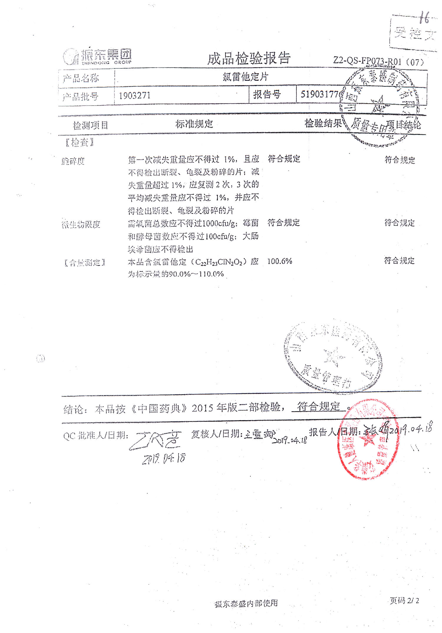 | 氯雷他定片 | 10mg*20s | 1906101(2/2) | 查看詳情 |