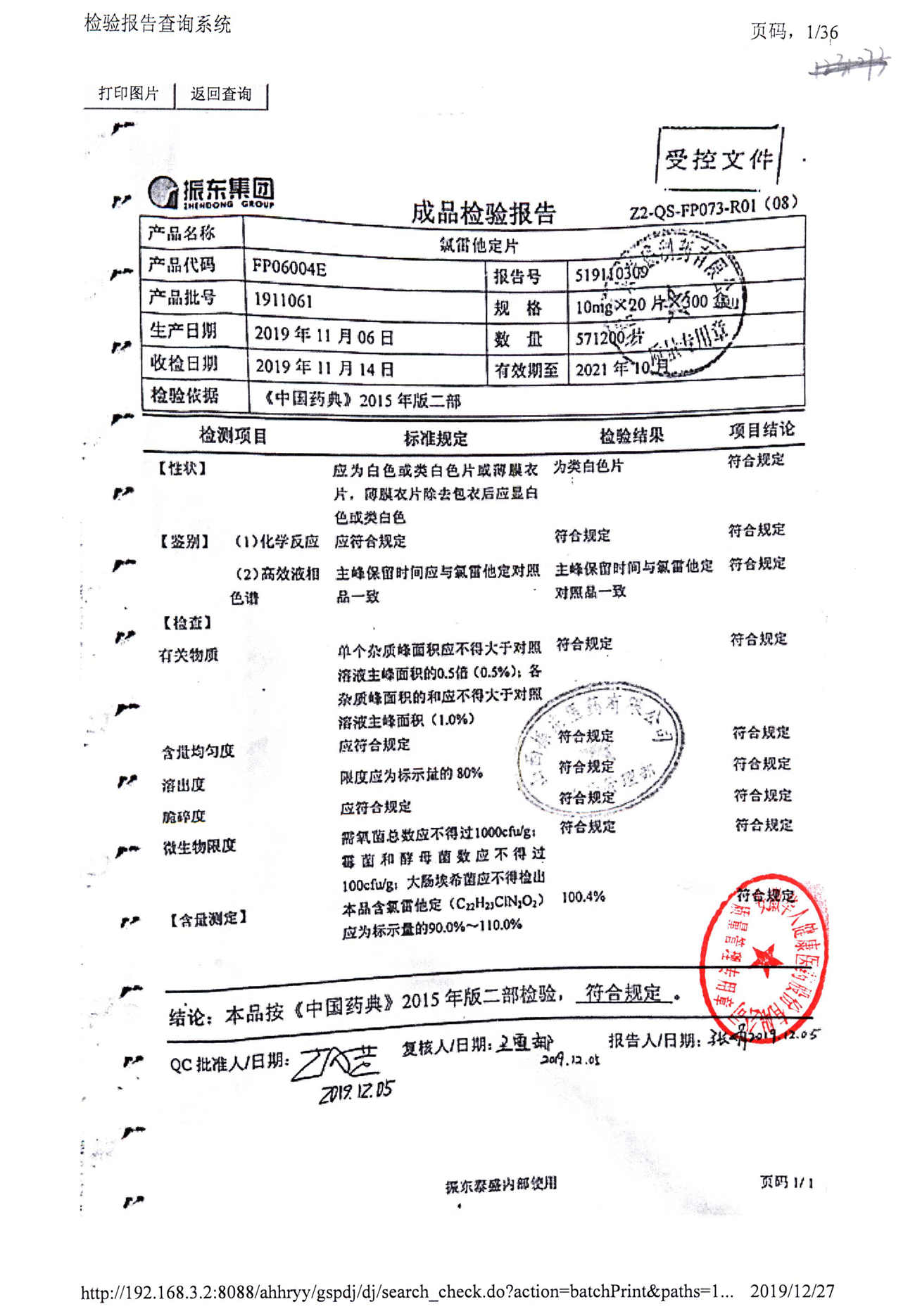 | 氯雷他定片 | 10mg*20s | 1906121(2/2) | 查看詳情 |