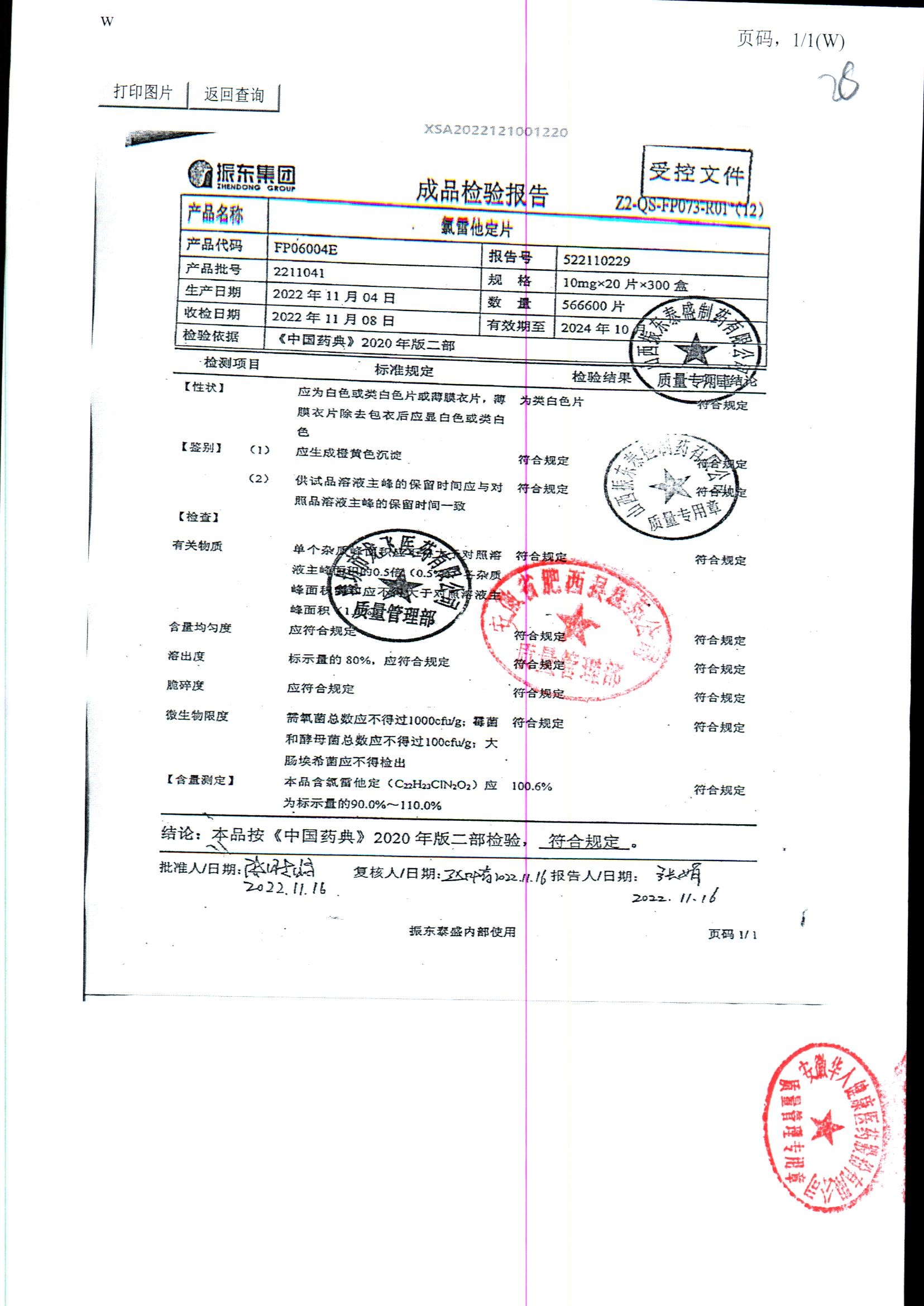 | 氯雷他定片 | 10mg*20s | 2211041 | 查看詳情 |