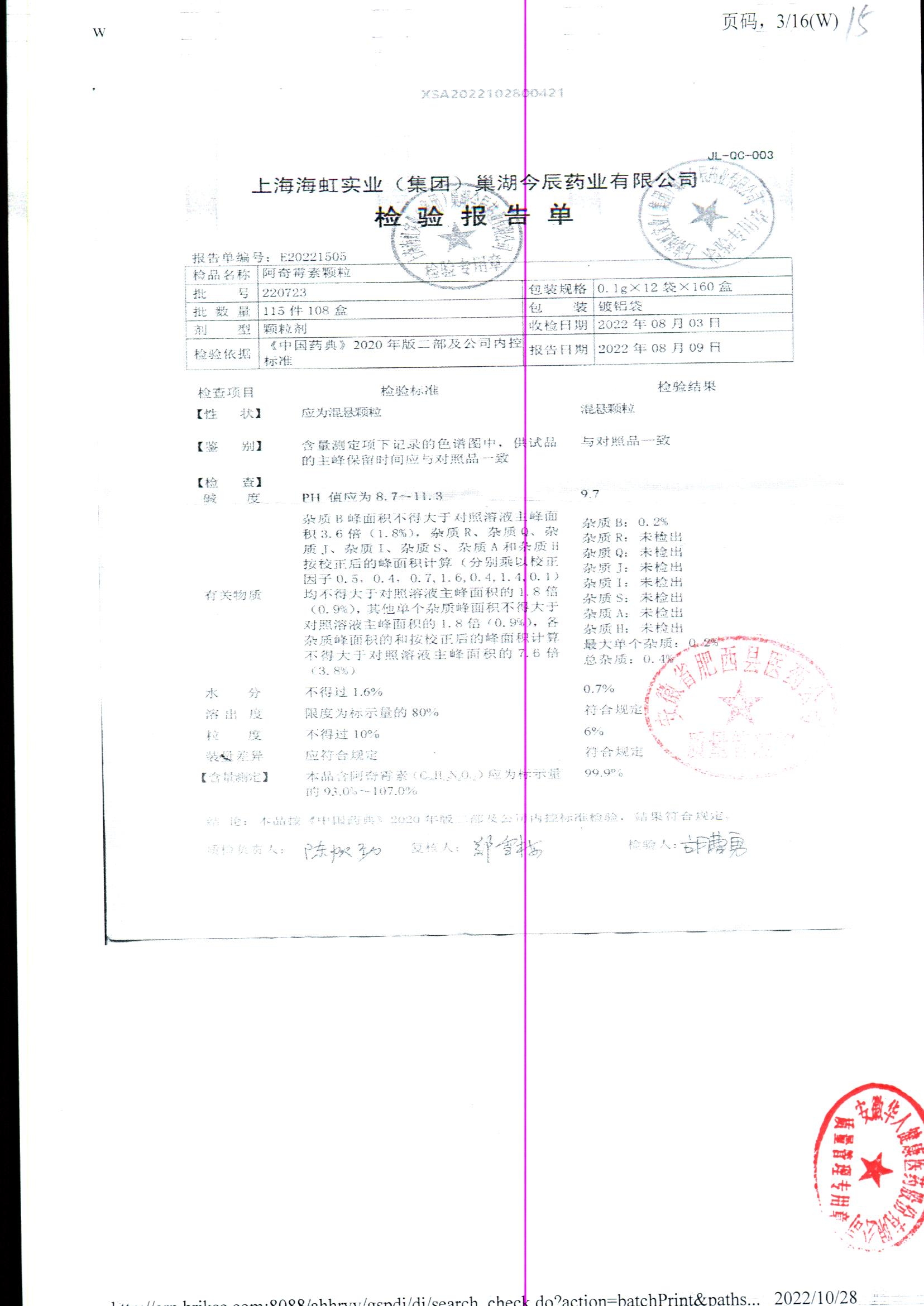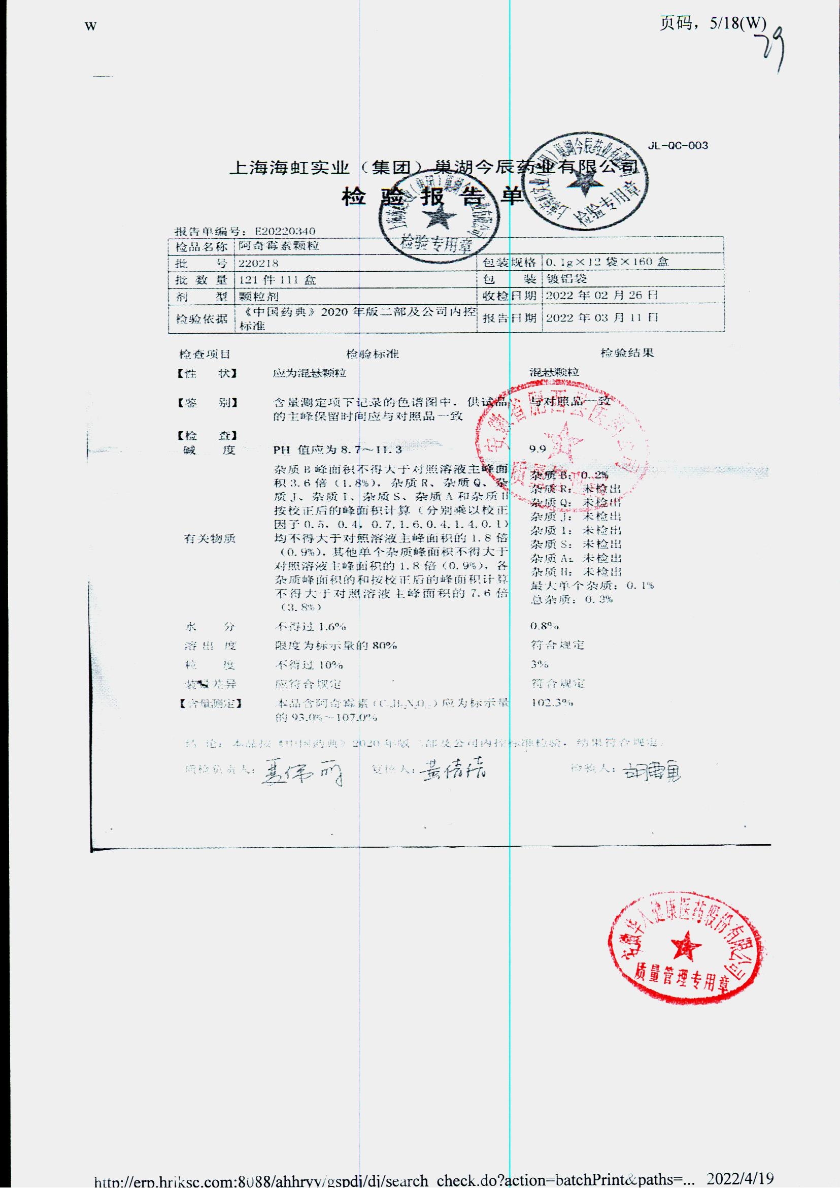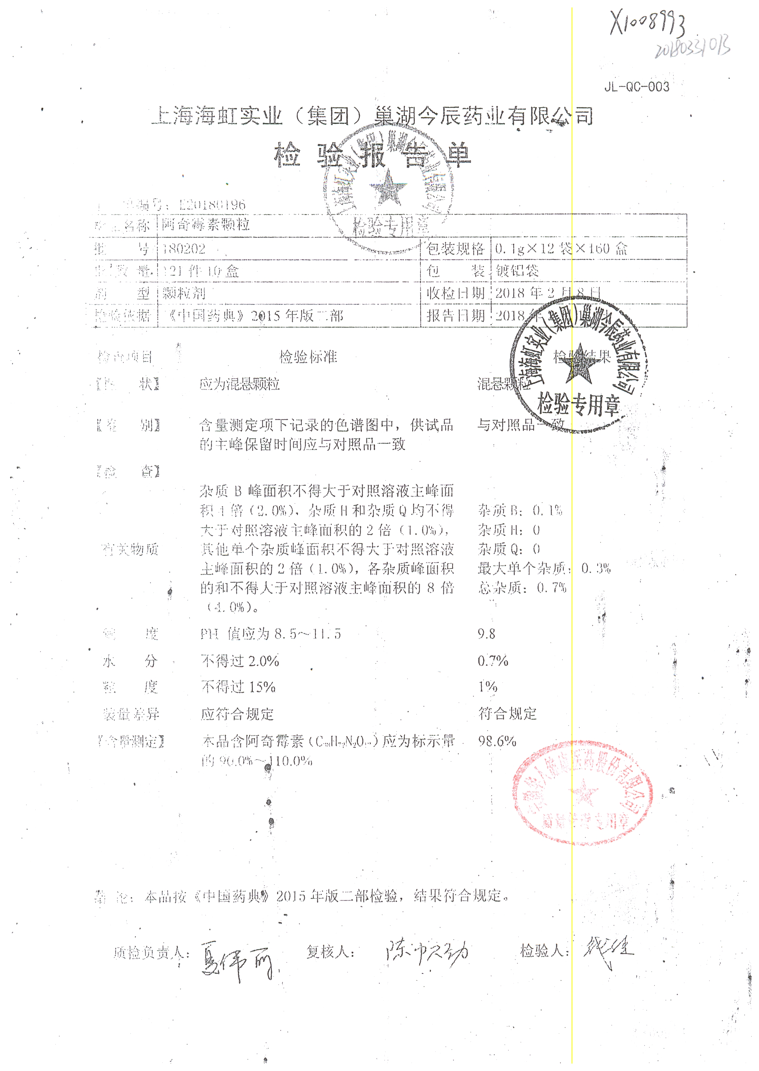 | 名稱 | 規(guī)格 | 批號 | 藥檢報告 |