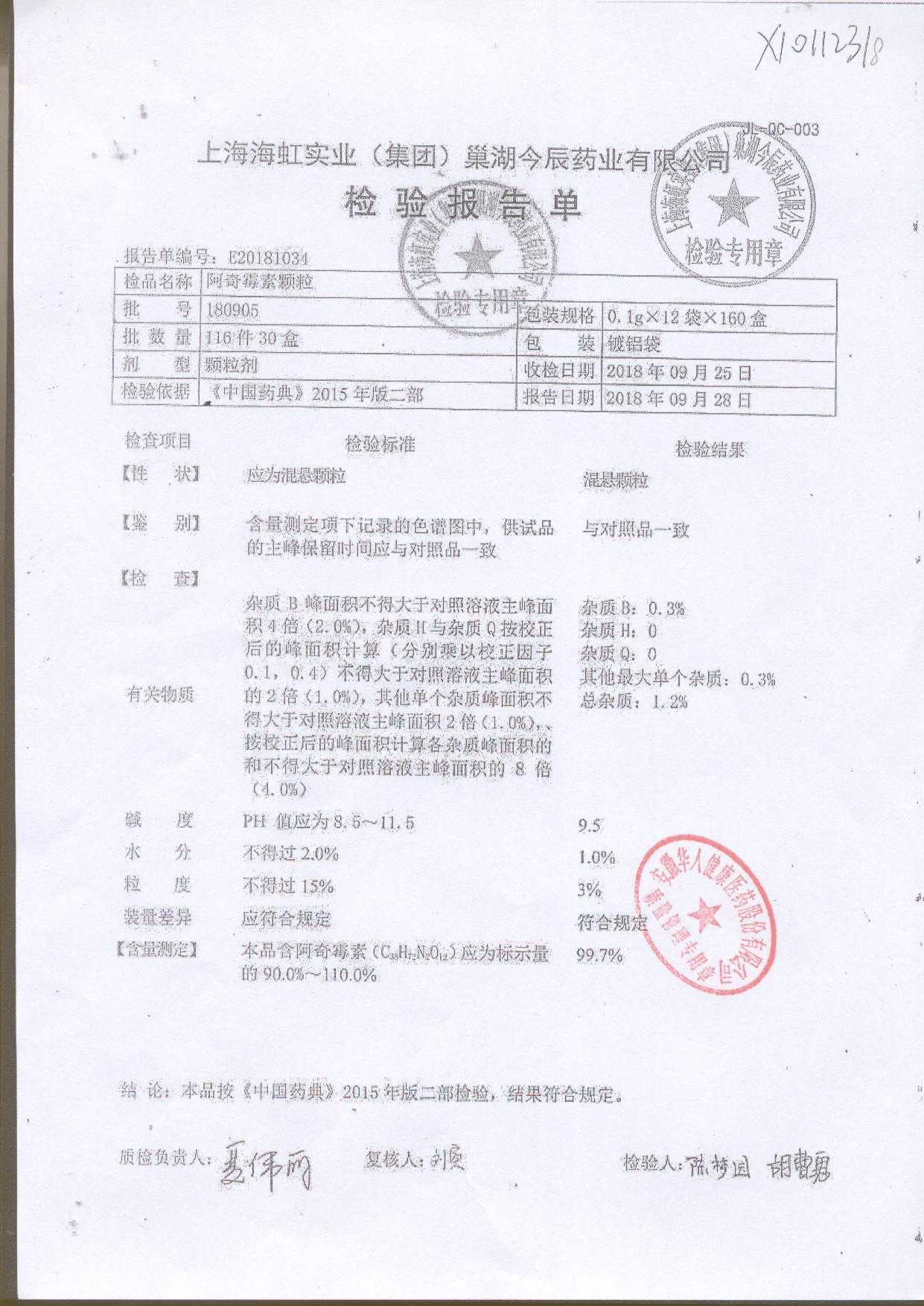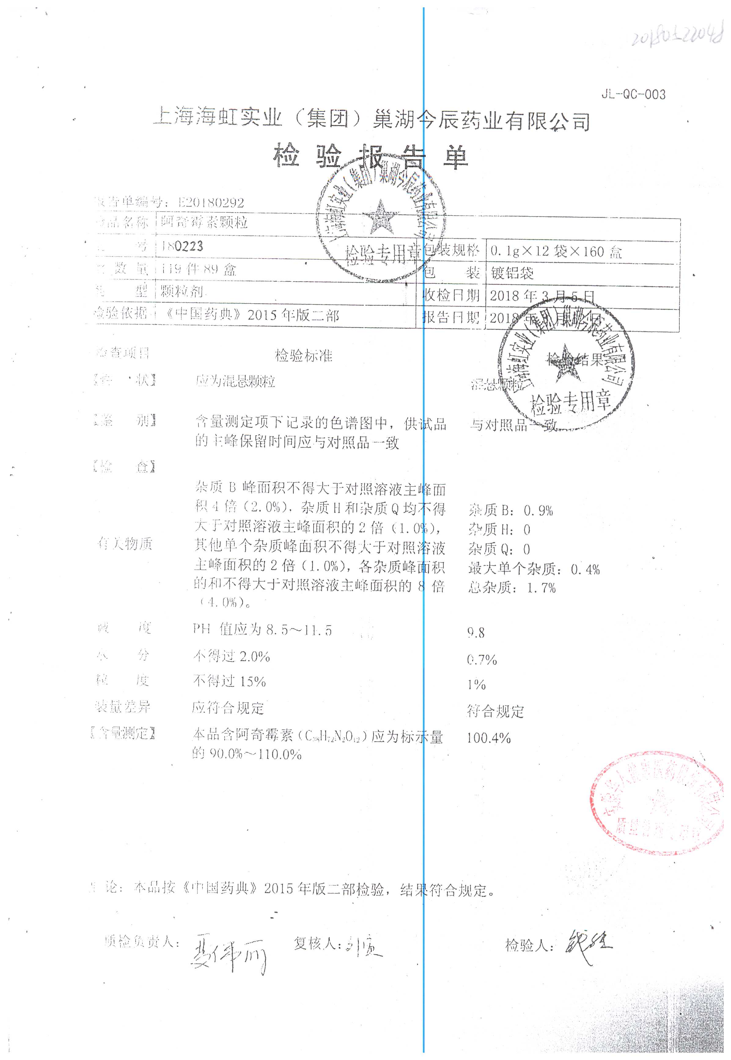 | 阿奇霉素顆粒 | 0.1g-12袋 | 180813 | 查看詳情 |