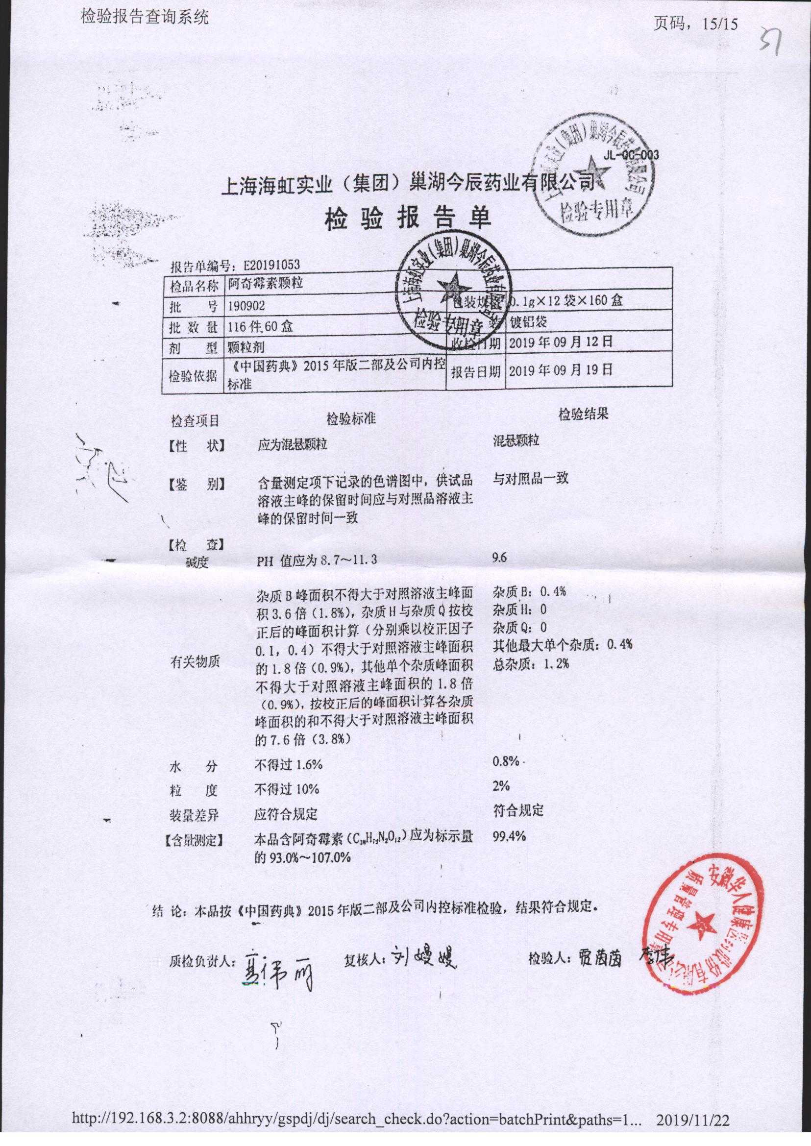 | 阿奇霉素顆粒 | 0.1g-12袋 | 190522 | 查看詳情 |