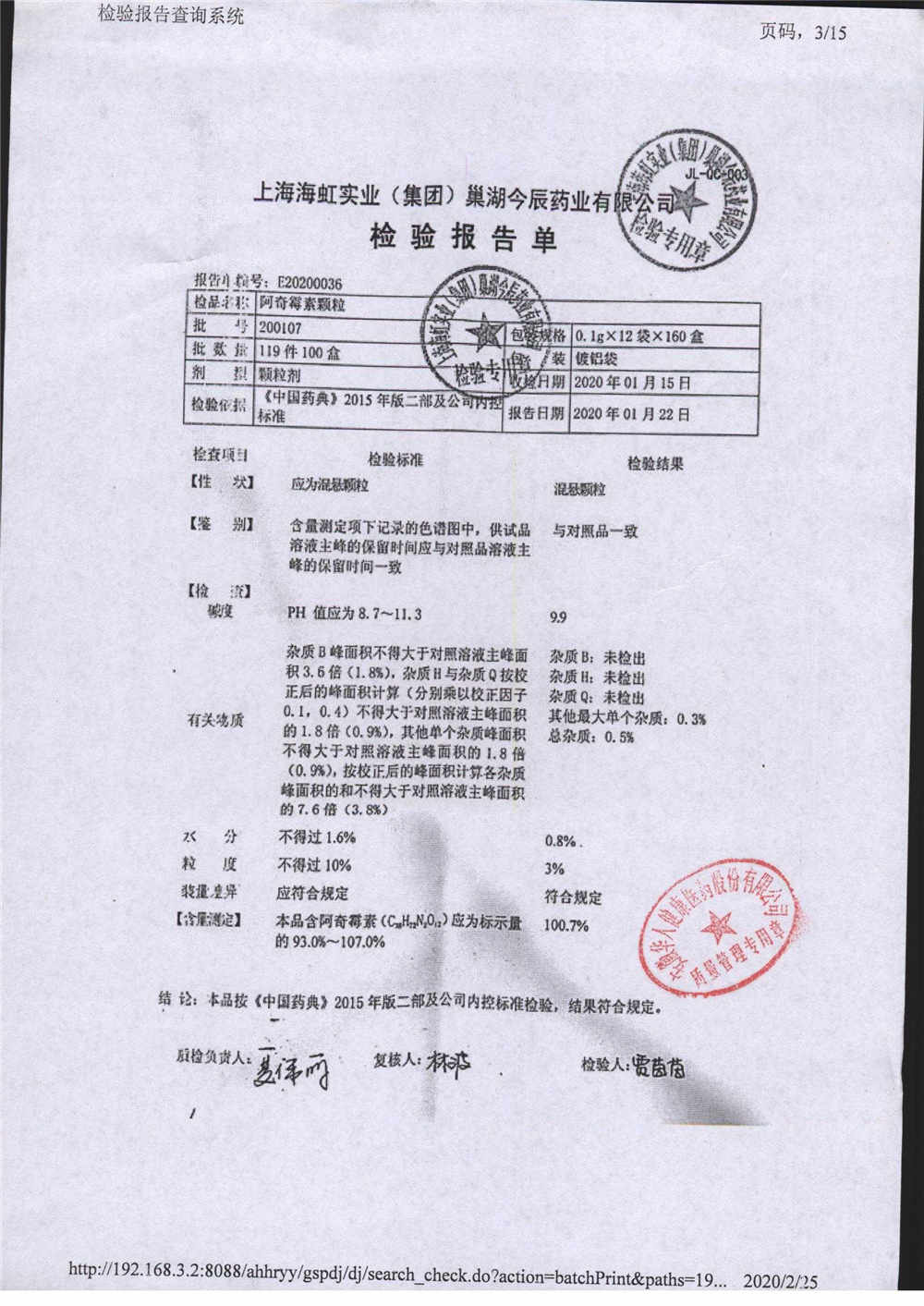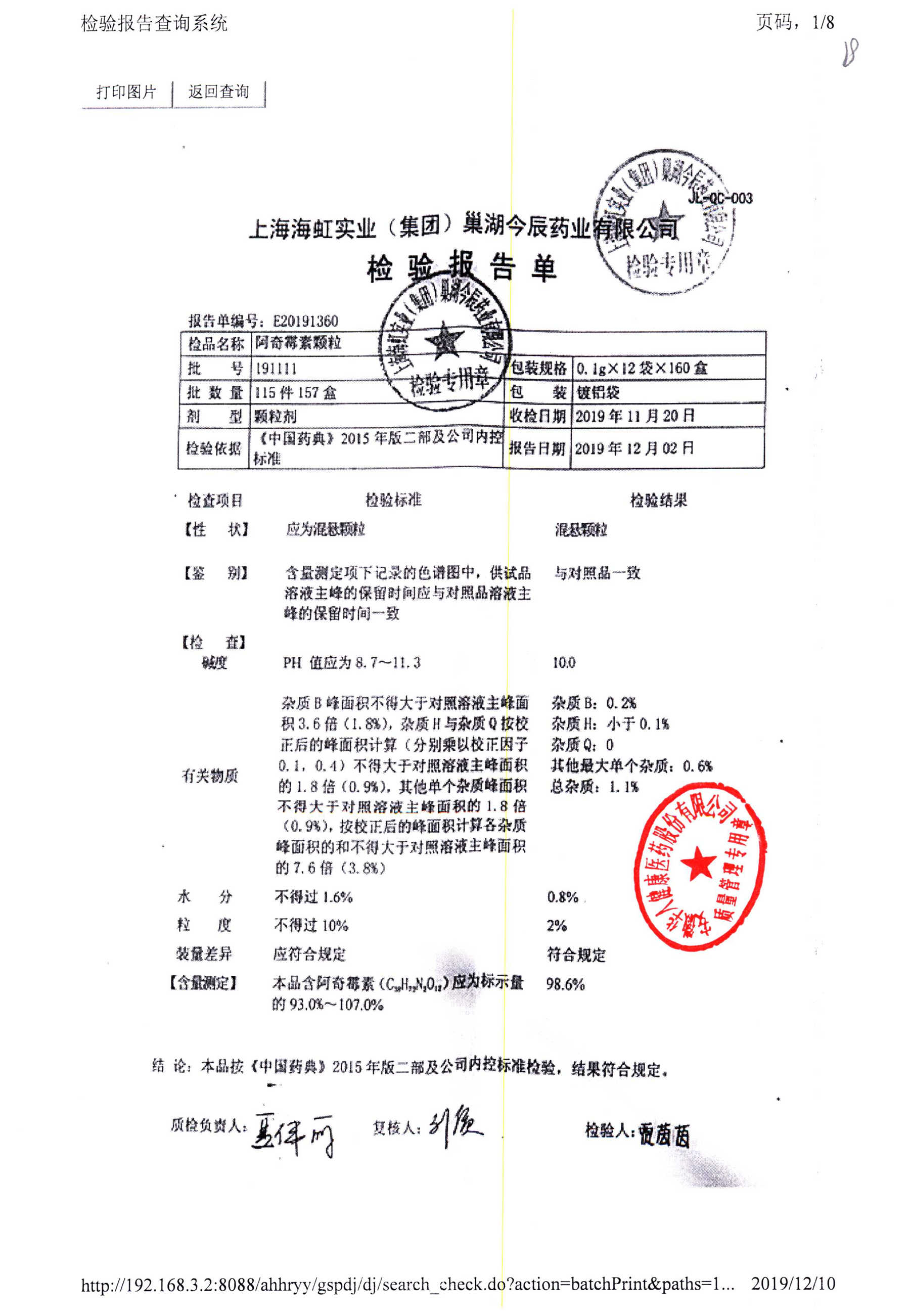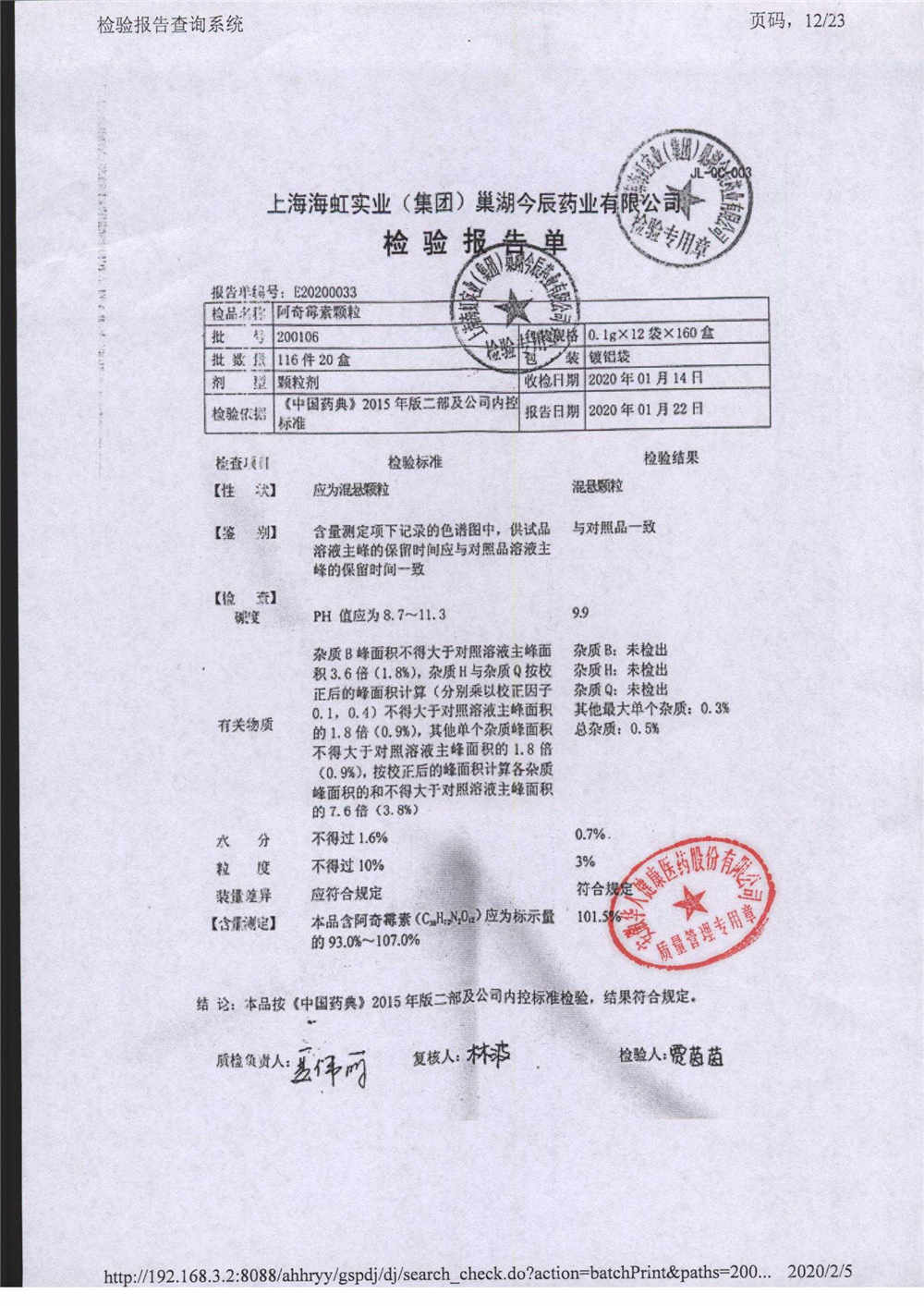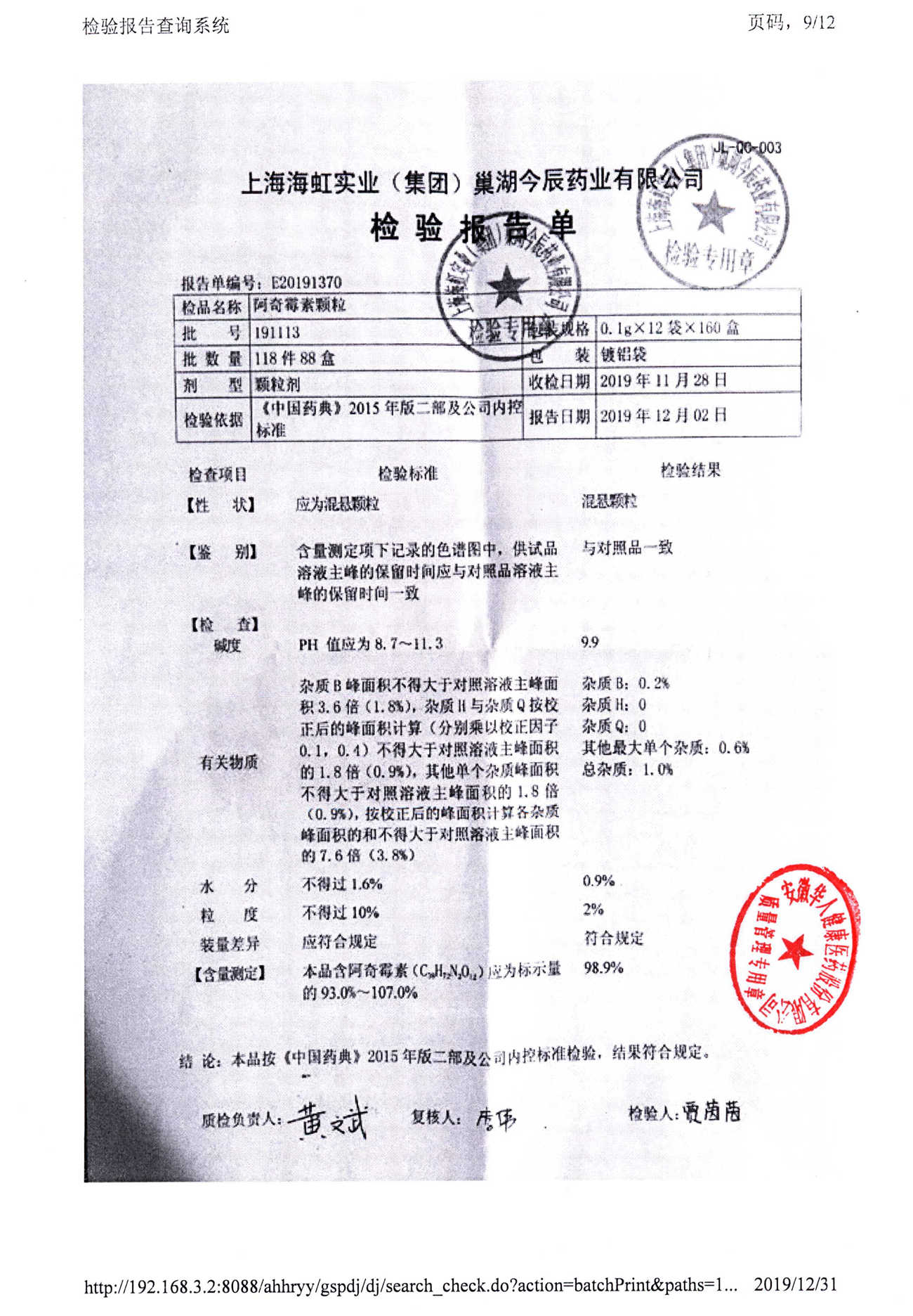 | 阿奇霉素顆粒 | 0.1g-12袋 | 190226 | 查看詳情 |