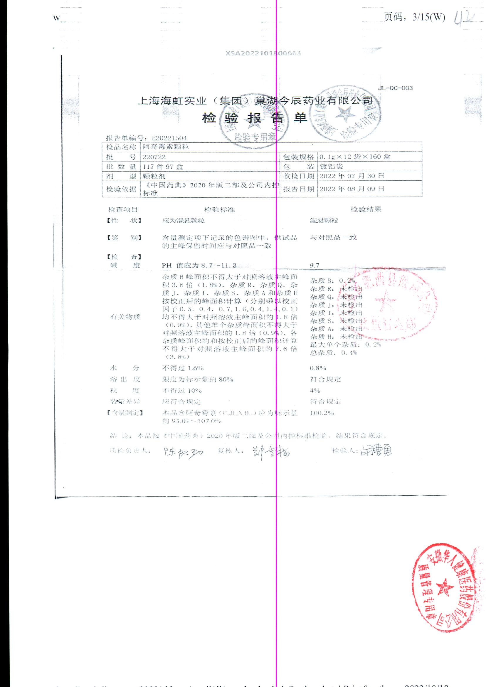 | 阿奇霉素顆粒 | 0.1g-12袋 | 221027 | 查看詳情 |